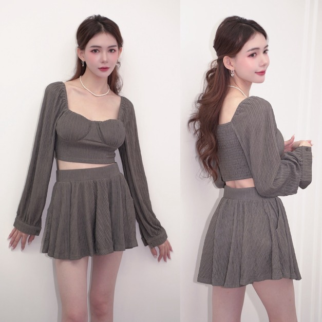 ➤水貂毛氣質方領上衣搭配鬆緊短裙