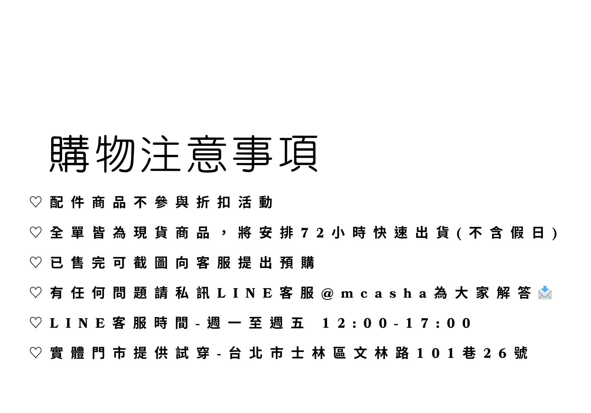 現貨售完後,如要「預購」請洽官方LINE-@mcasha...