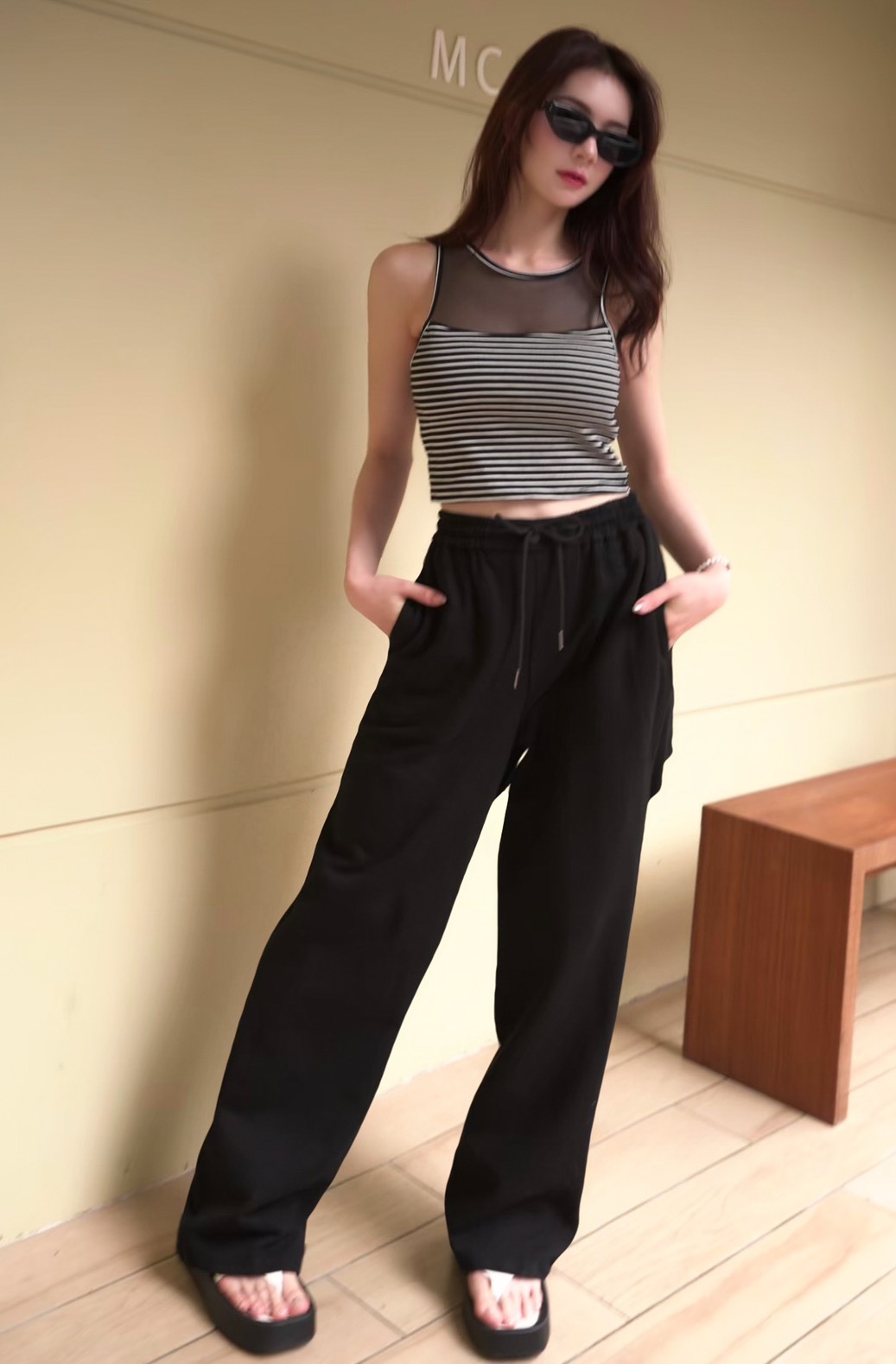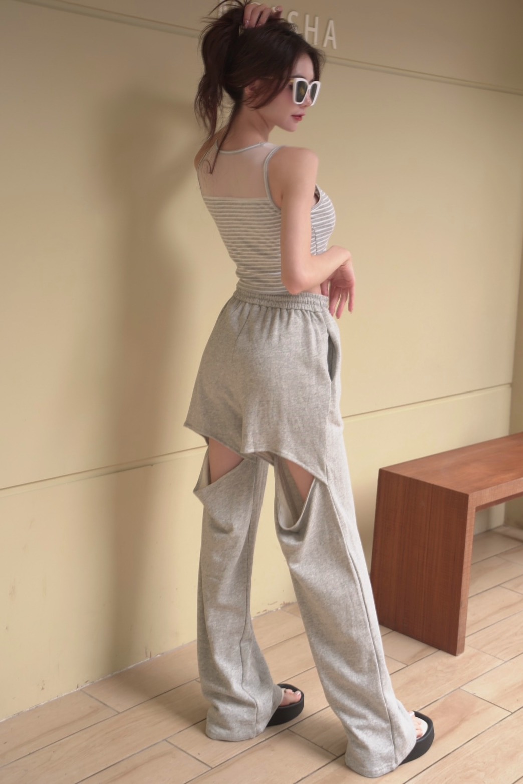 版型描述 | 寬鬆腰圍有鬆緊抽繩可以調整腰圍 |