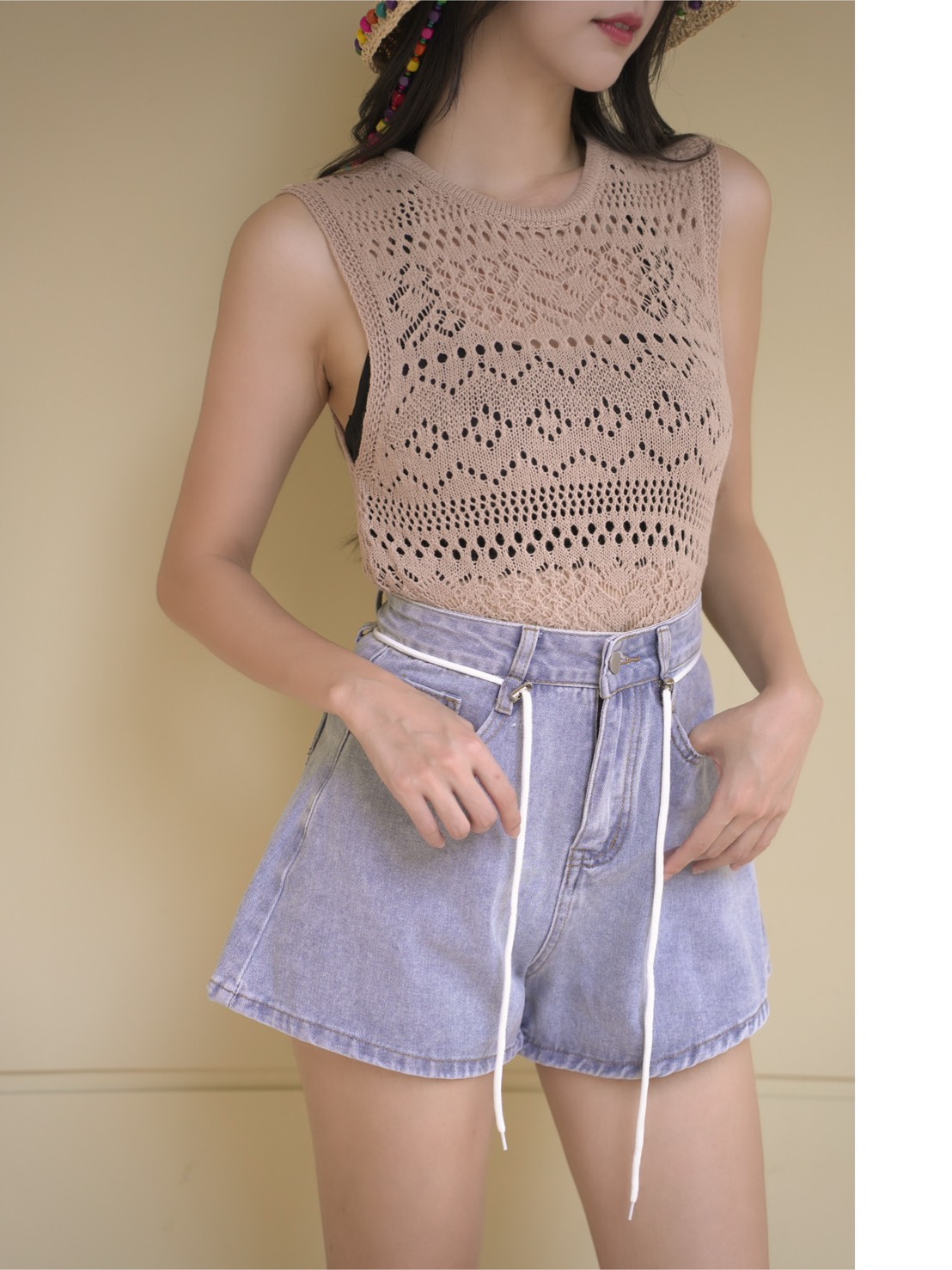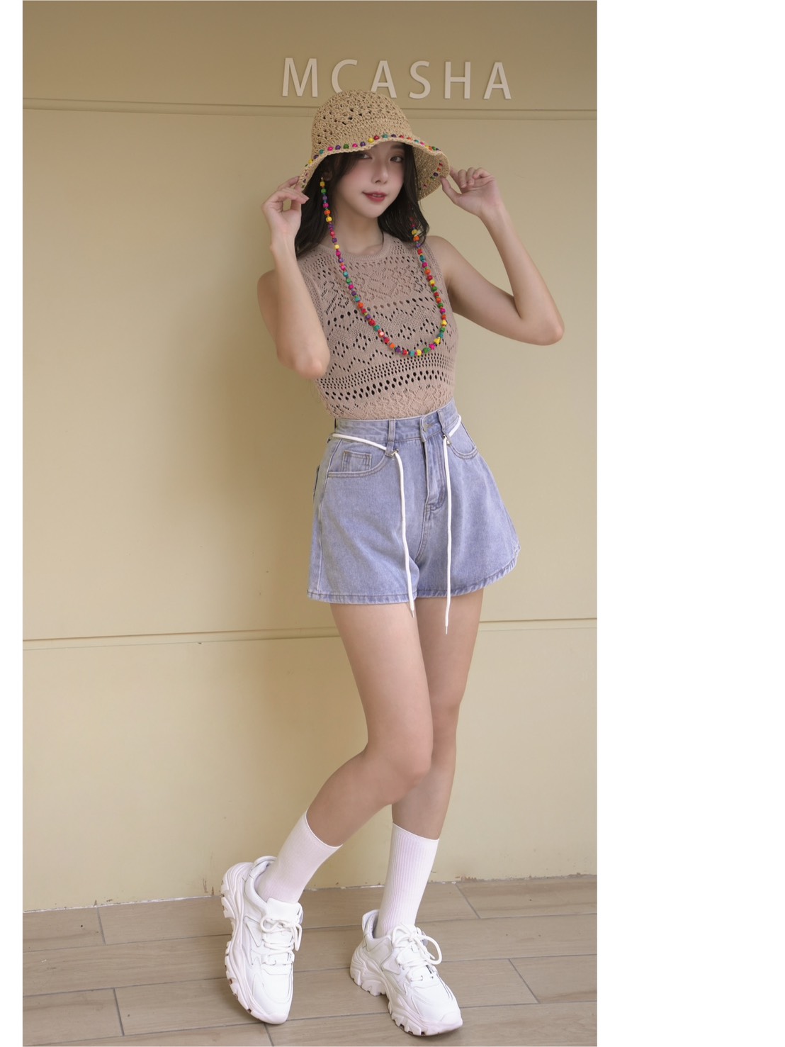 ➤抽繩花苞顯瘦愛心牛仔短褲S~L
