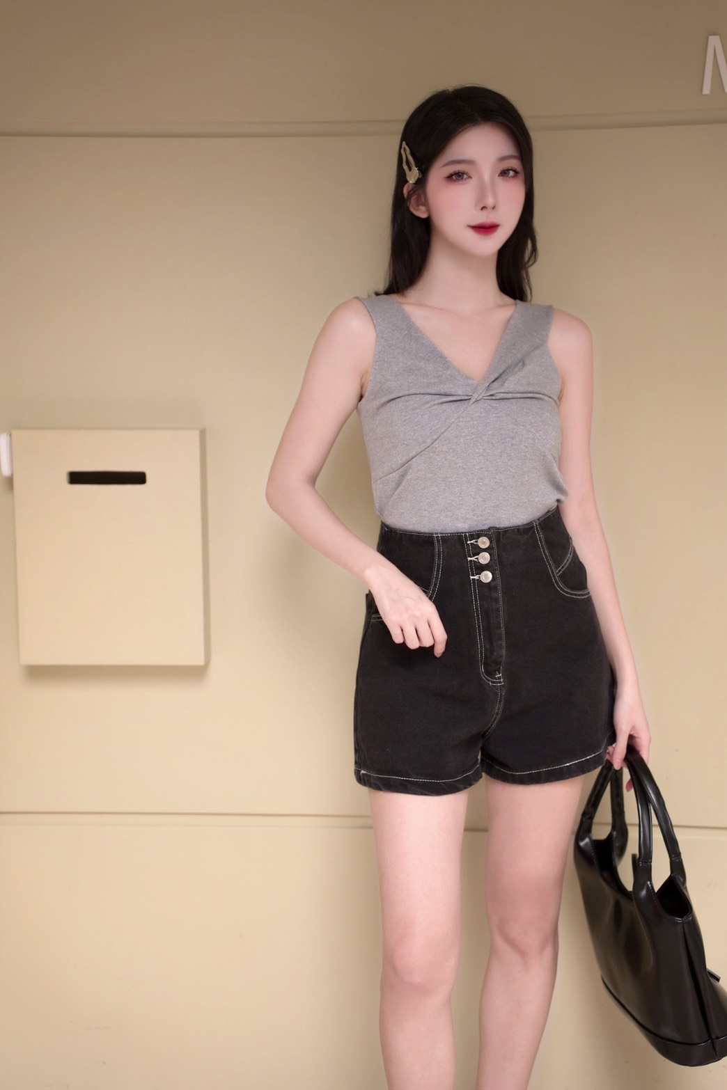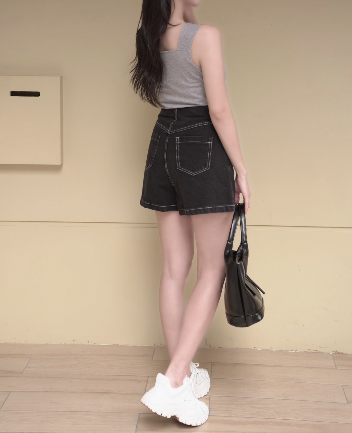 ➤韓系極高腰三釦牛仔A字牛仔短褲S~L