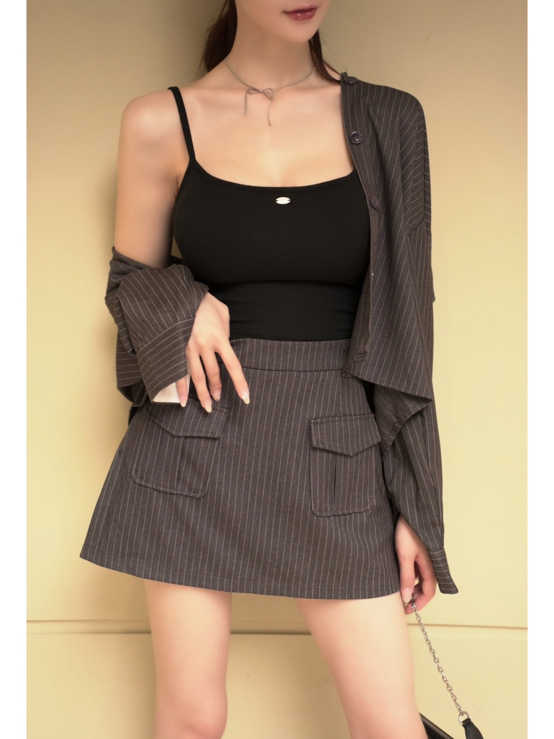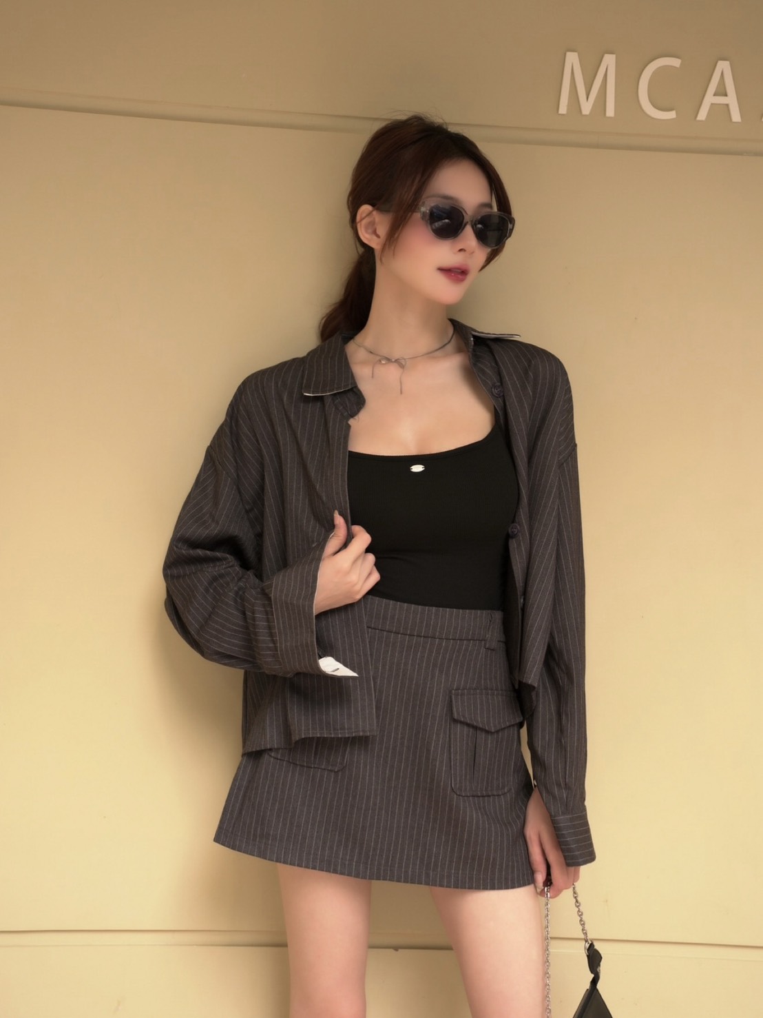 ➤俐落感直紋襯衫搭配鬆緊短褲裙(2色)