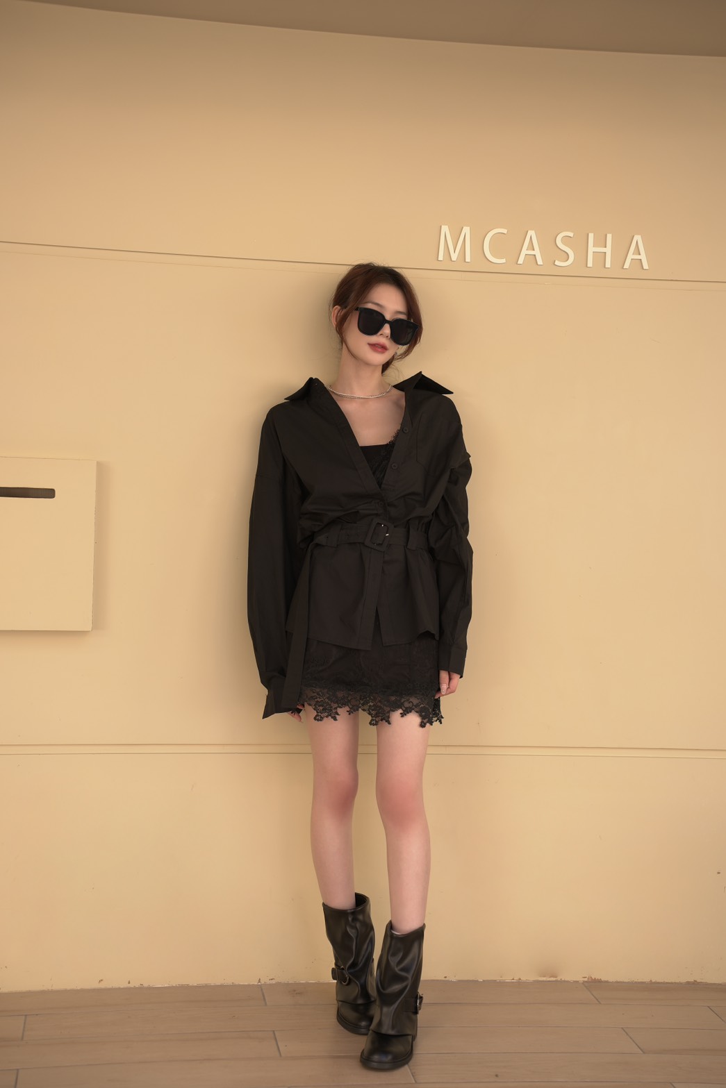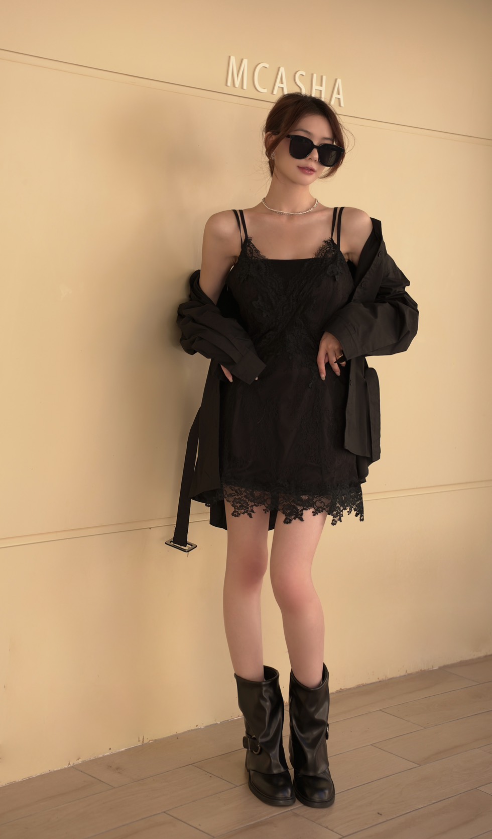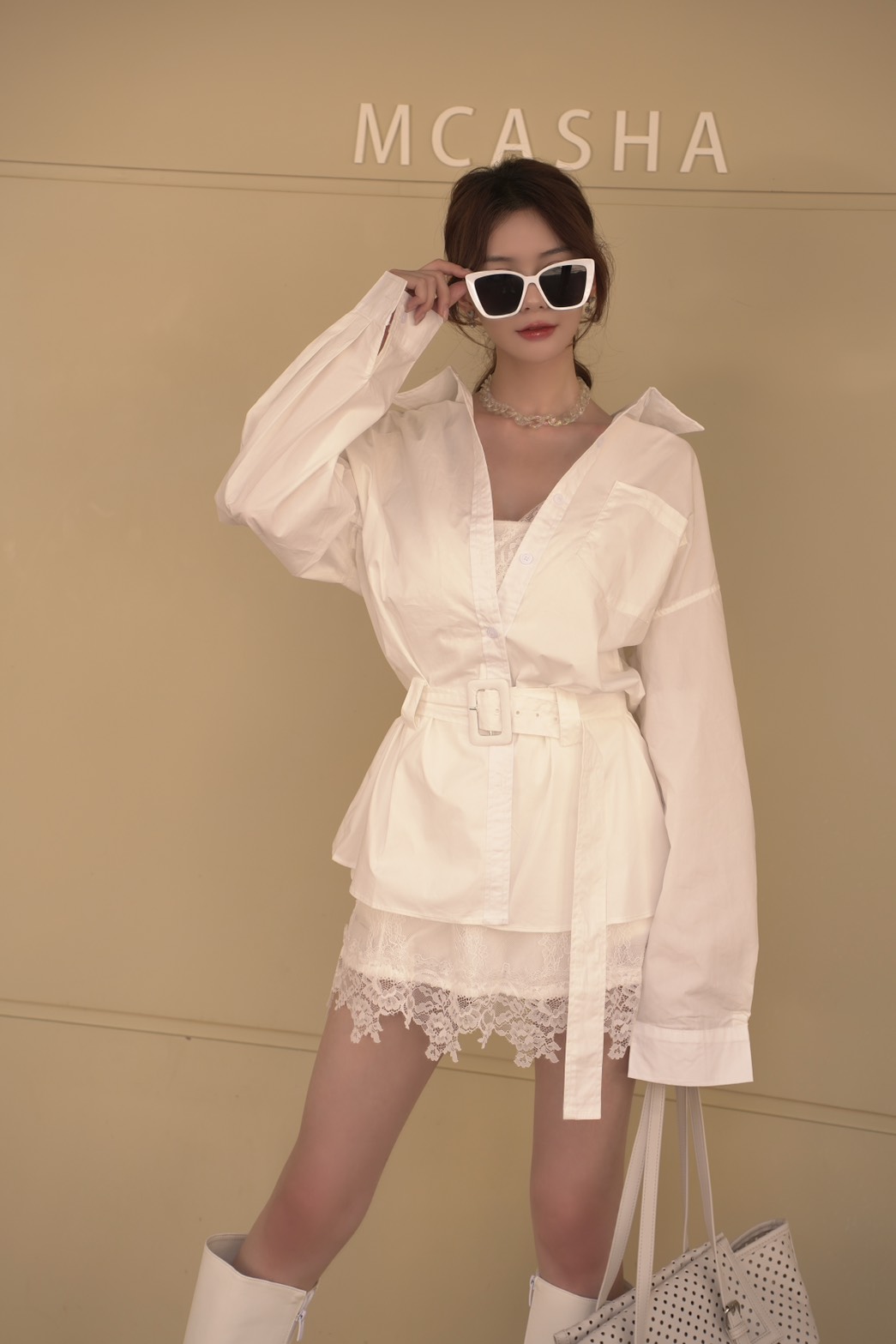 歐美蕾絲短洋搭配長板襯衫(2色)
