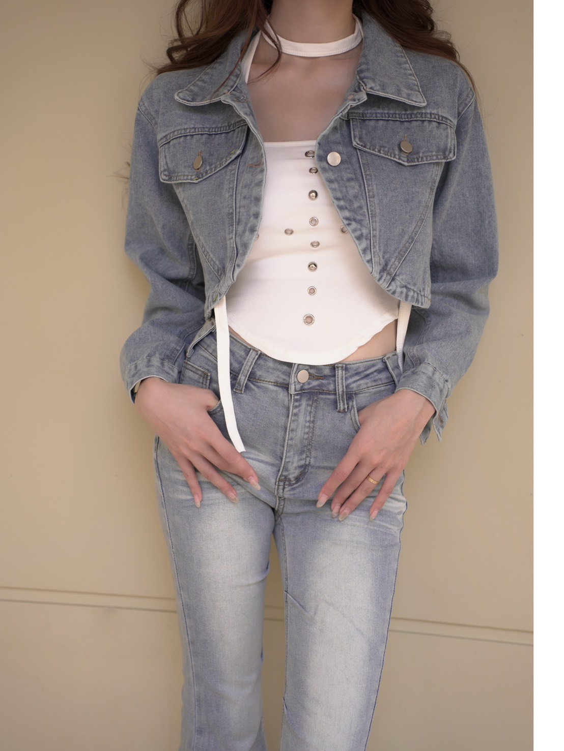 時髦下圓弧短版牛仔外套(2色)