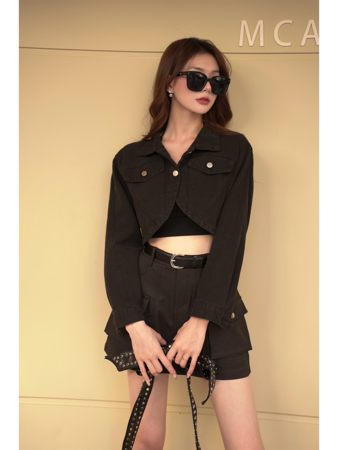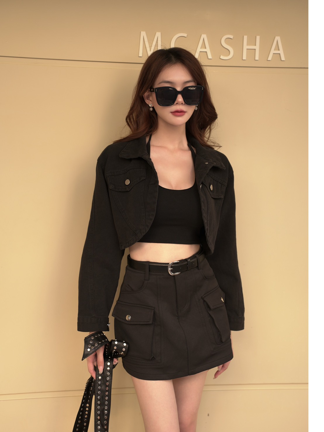 副皮帶工裝造型A字短裙S~M