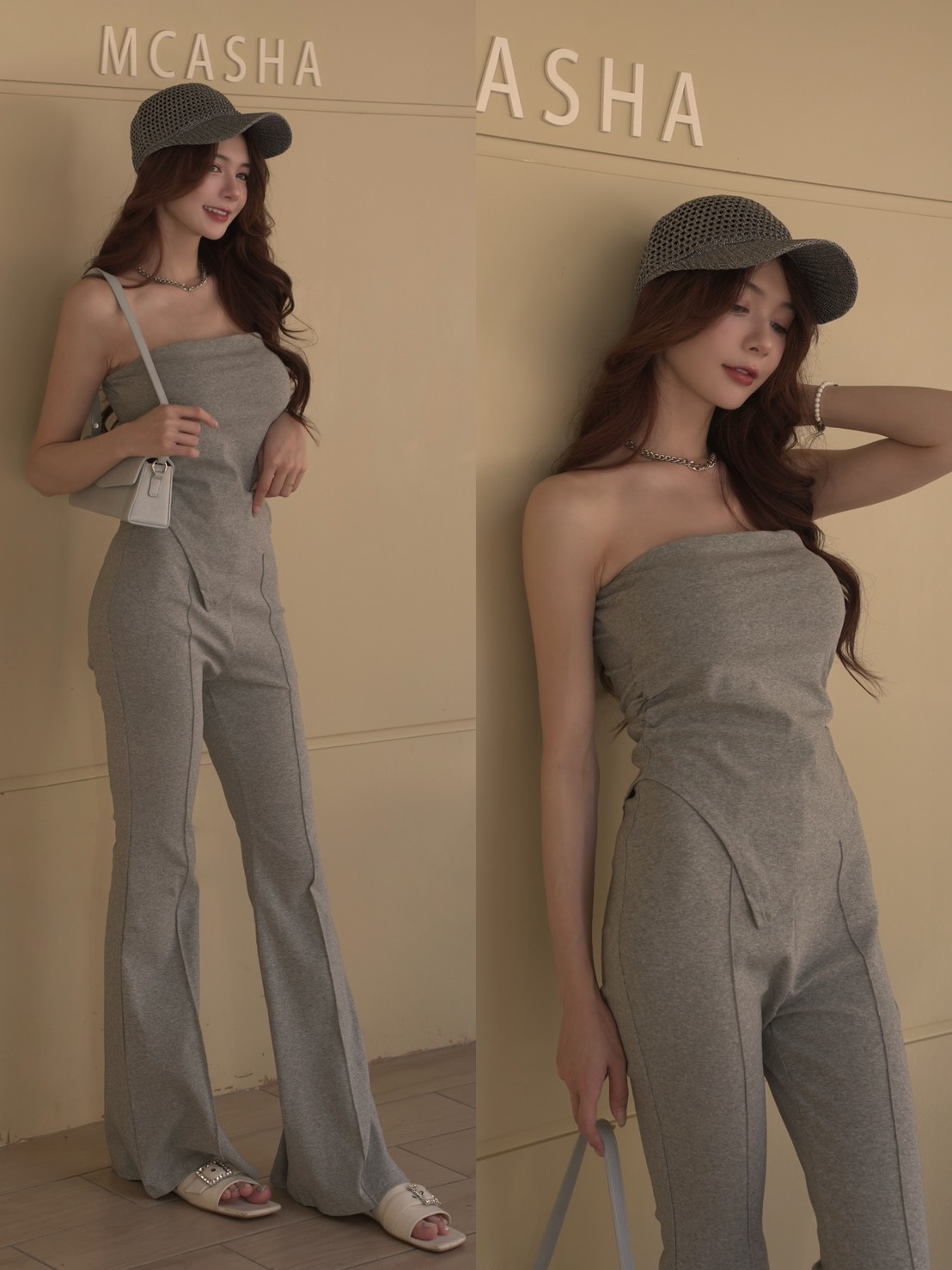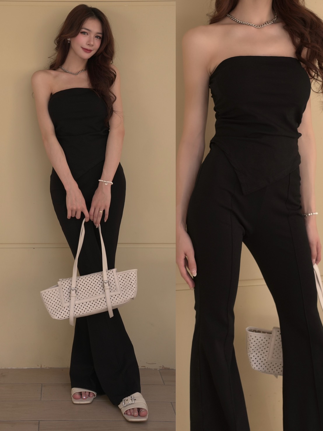 超耐看平口抓皺背心搭配鬆緊喇叭長褲(4色)