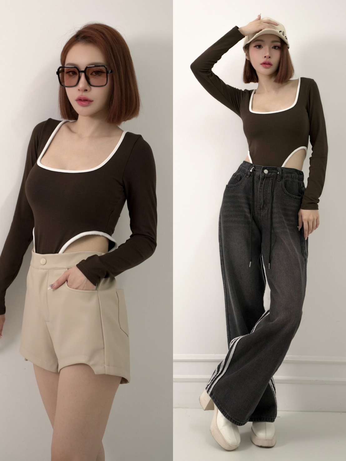 ➤觸感極好美式方領滾邊包屁衣(2色)