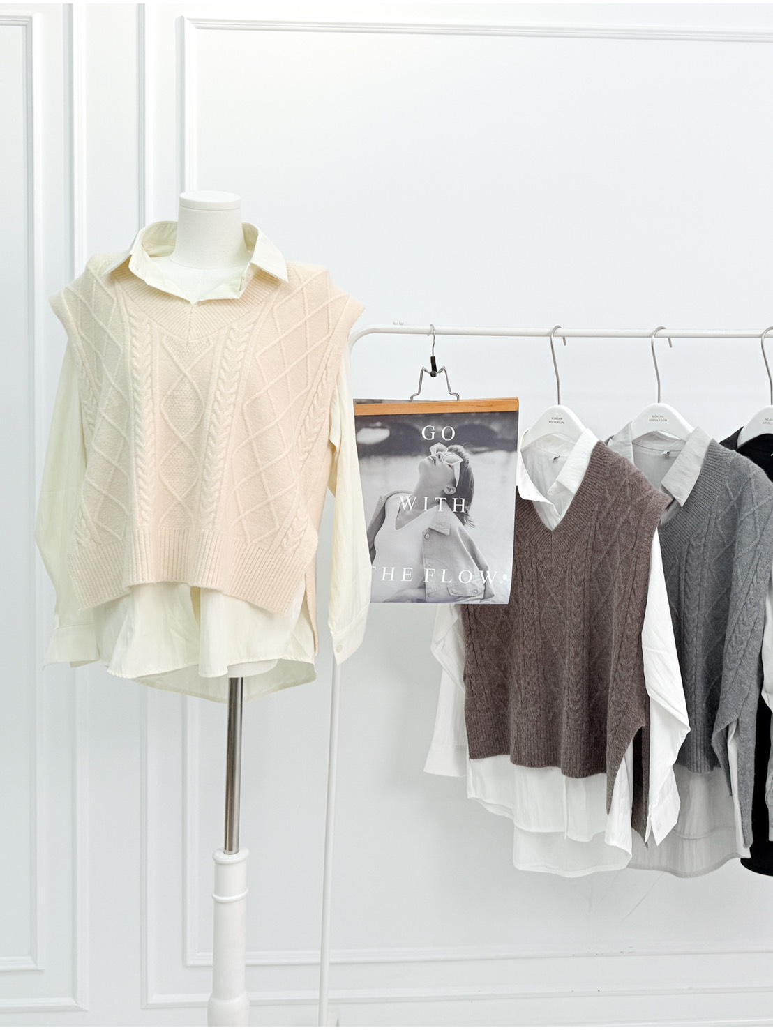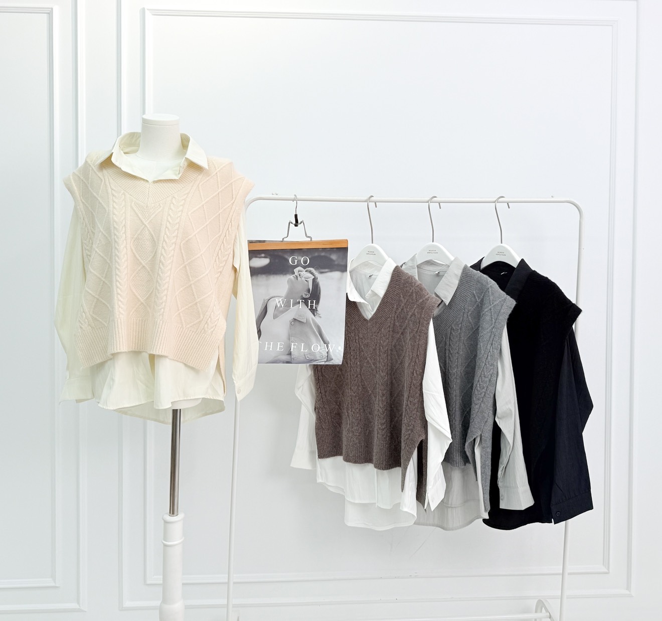 版型描述 | 寬鬆襯衫+無袖針織衫 | ||