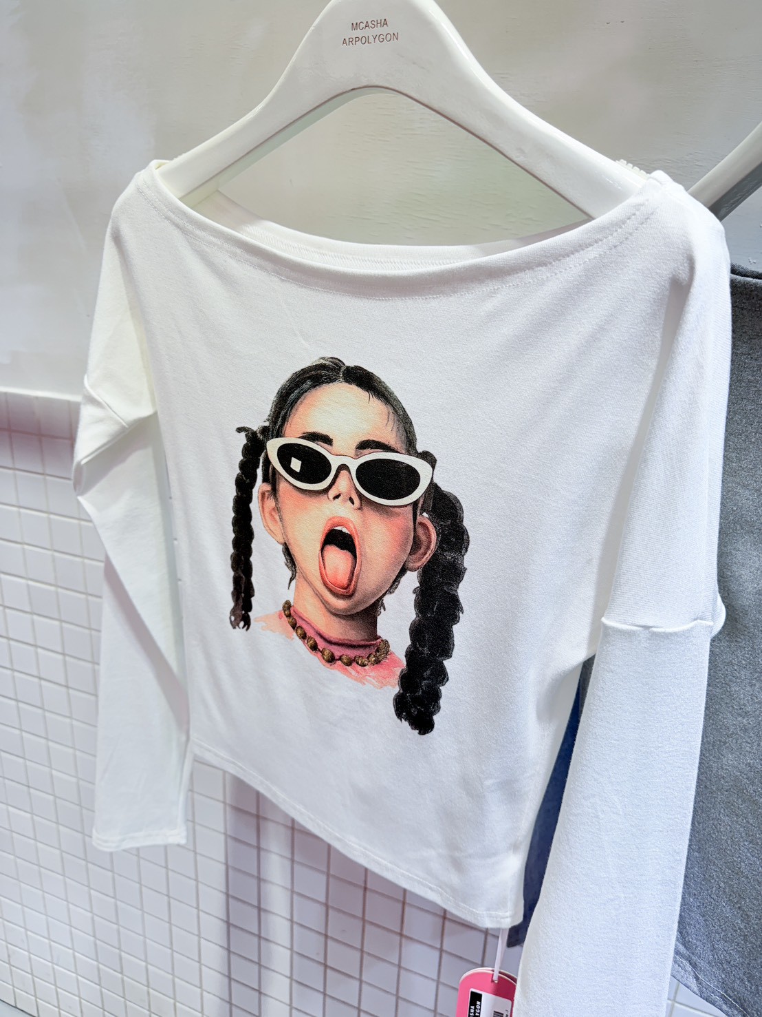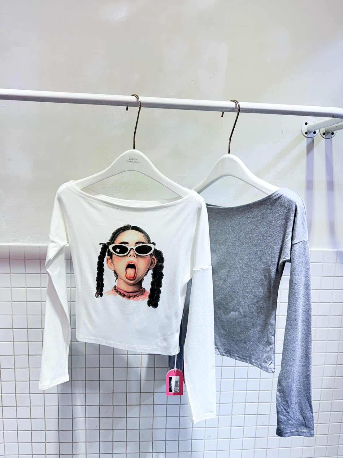 墨鏡少女柔軟棉質百搭寬鬆TEE(2色)