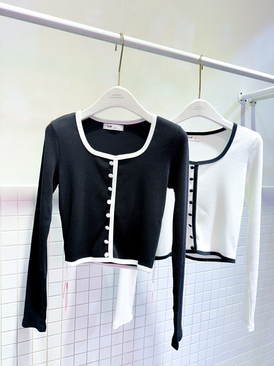 小香風拼色排釦滾邊螺紋圓領長袖上衣(3色)