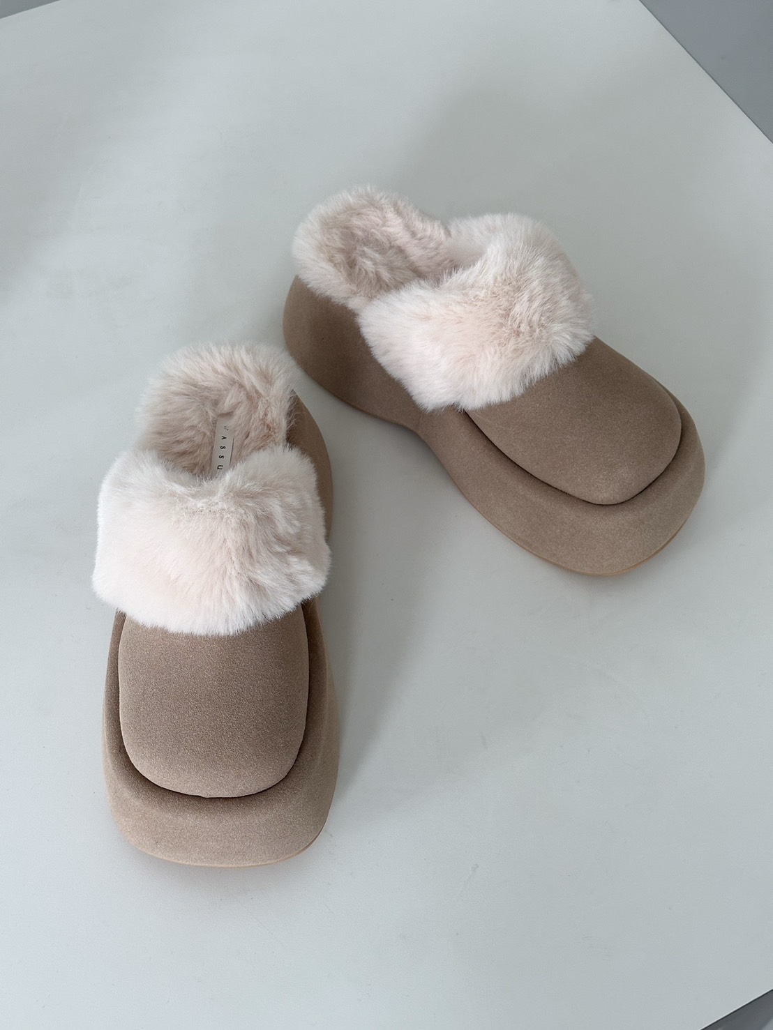 韓版麂皮拼接毛毛厚底拖35-40