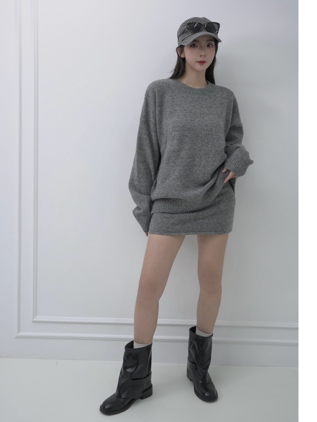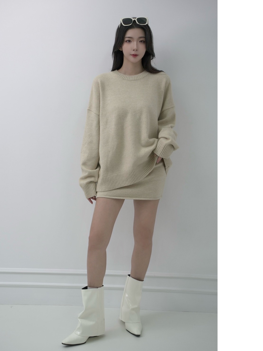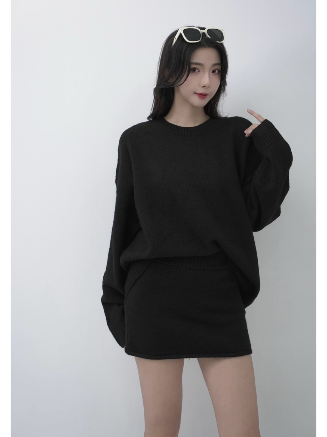 韓國寬鬆羊毛上衣搭配高腰鬆緊短裙(3色)
