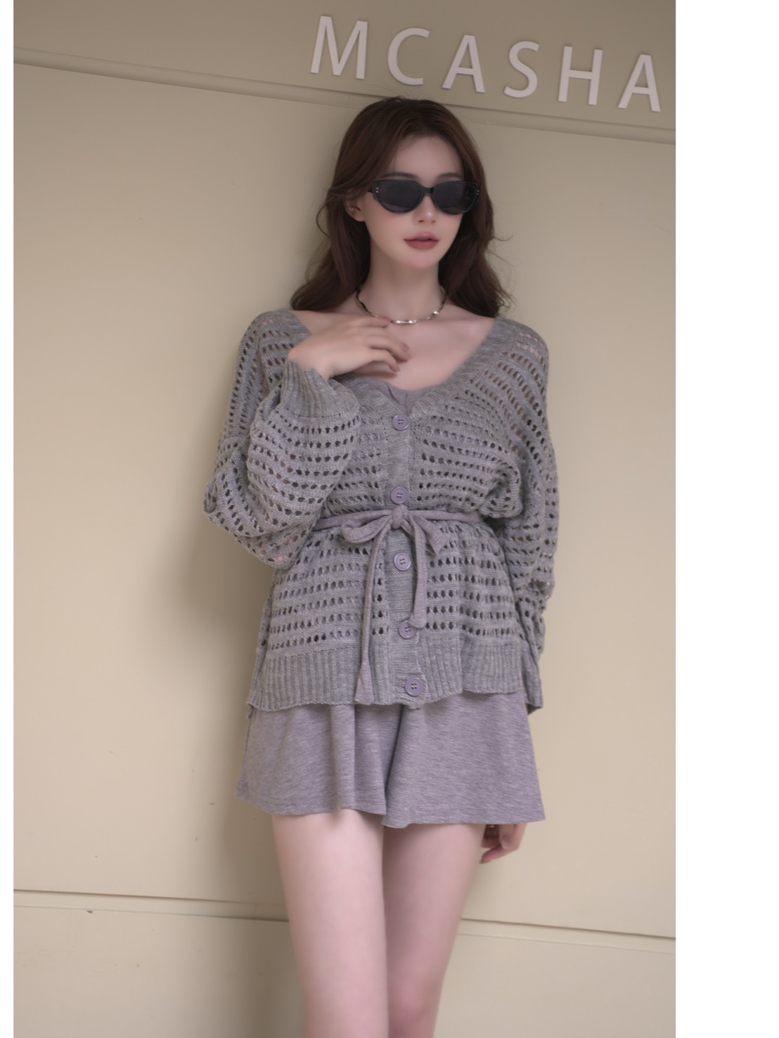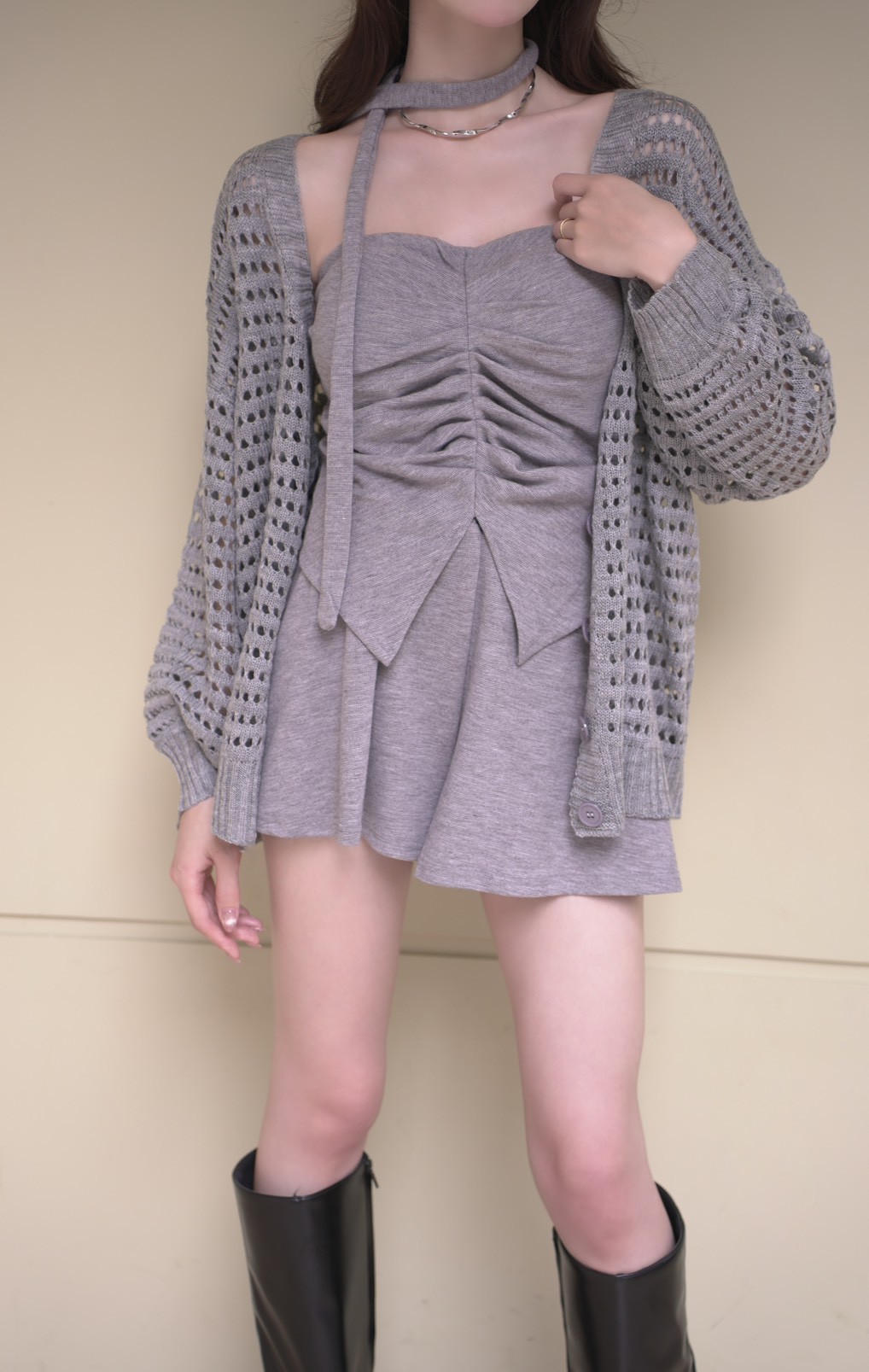 版型描述 | 排釦上衣可當外套抹胸有防滑下身高腰寬鬆 |