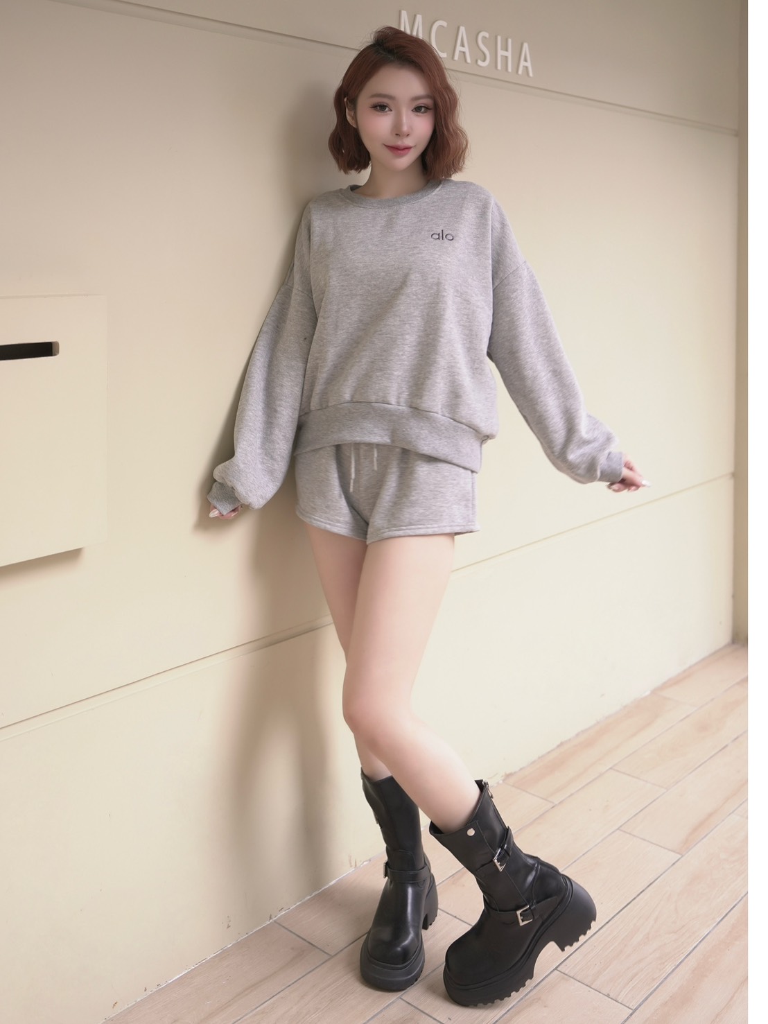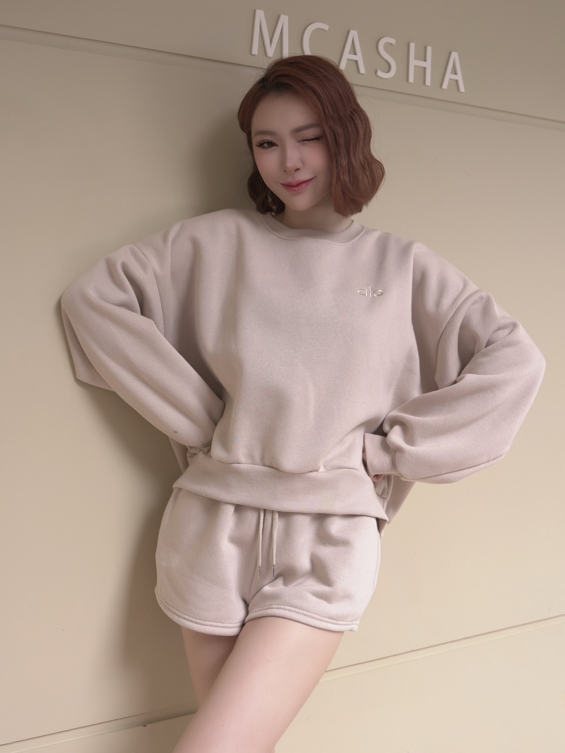字母造型磨毛大學T搭配鬆緊抽繩磨毛短褲 (4色)