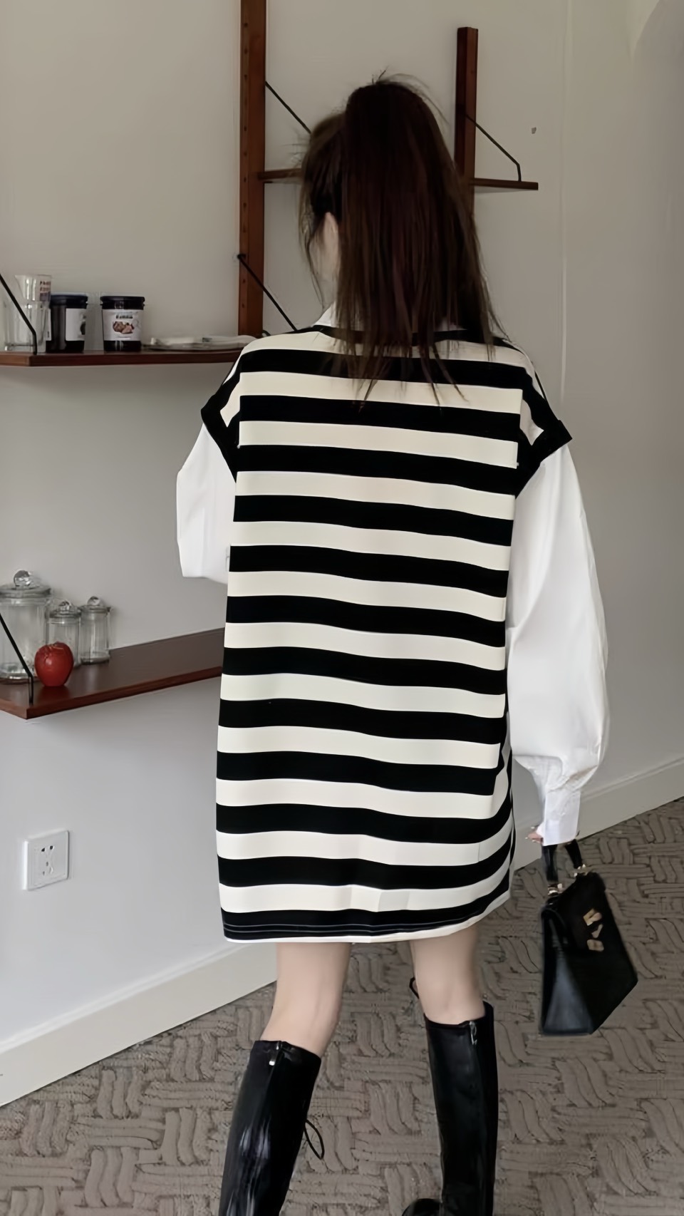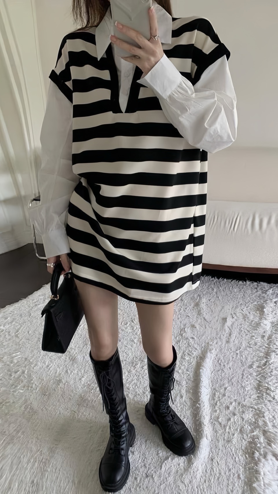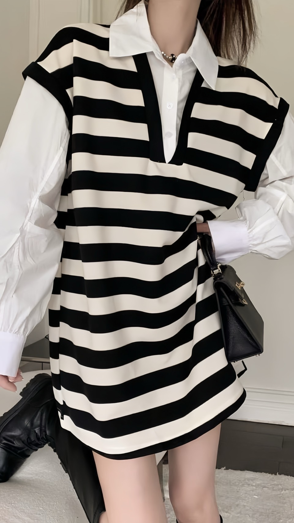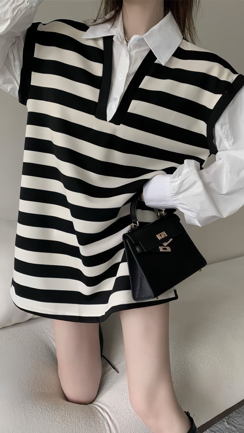 假兩件襯衫領橫條onepice