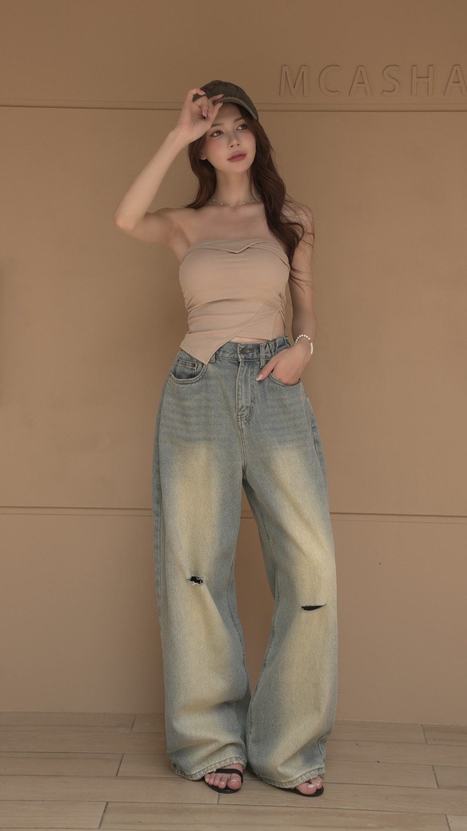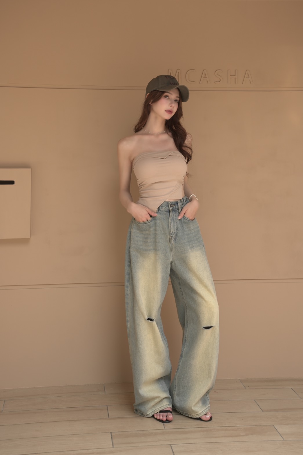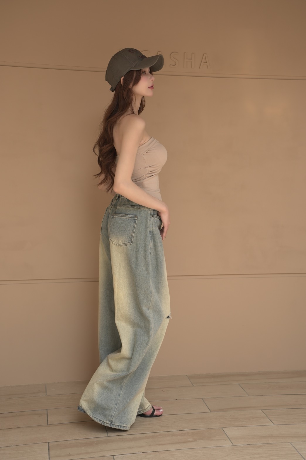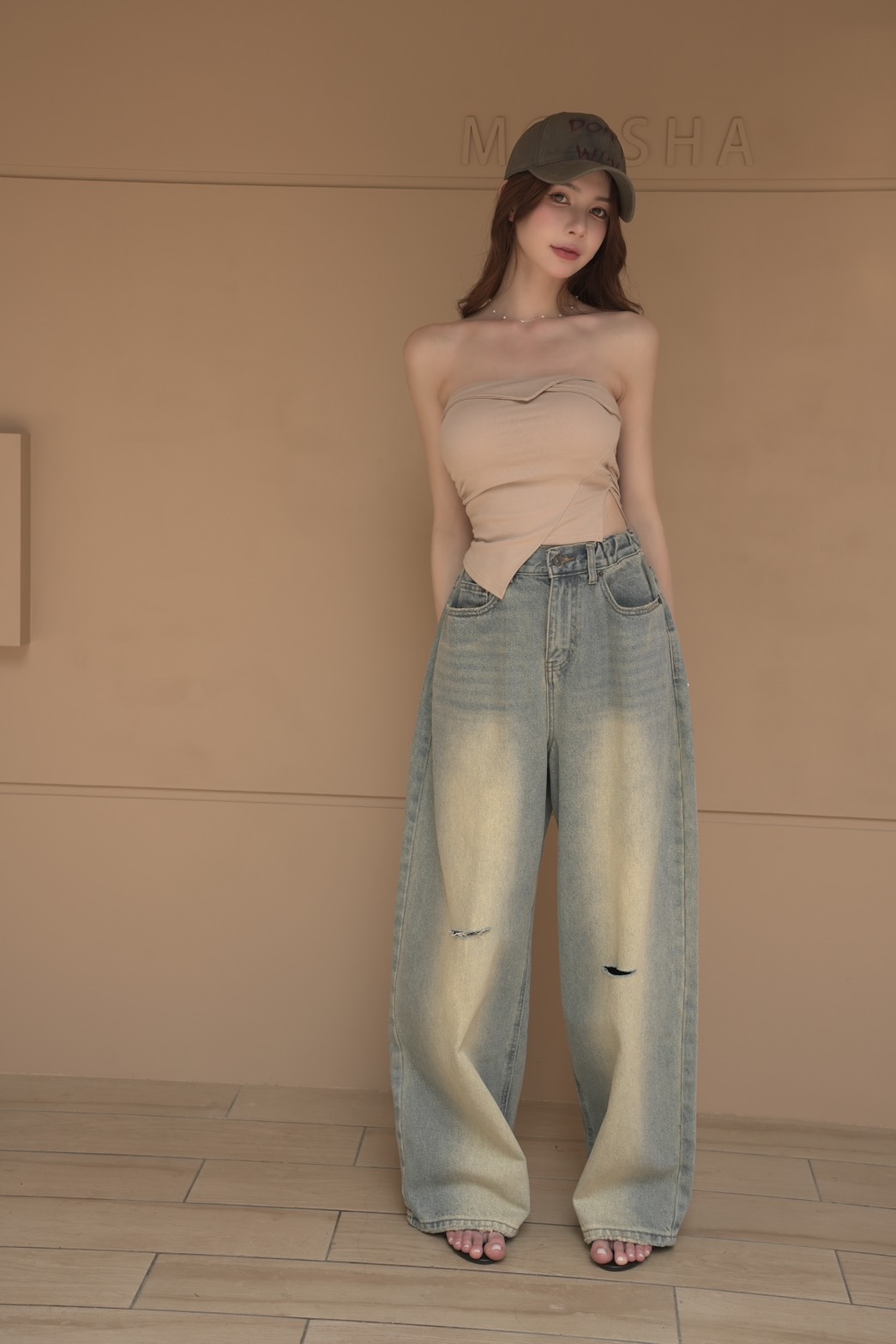 時髦漸層牛仔寬褲S~L