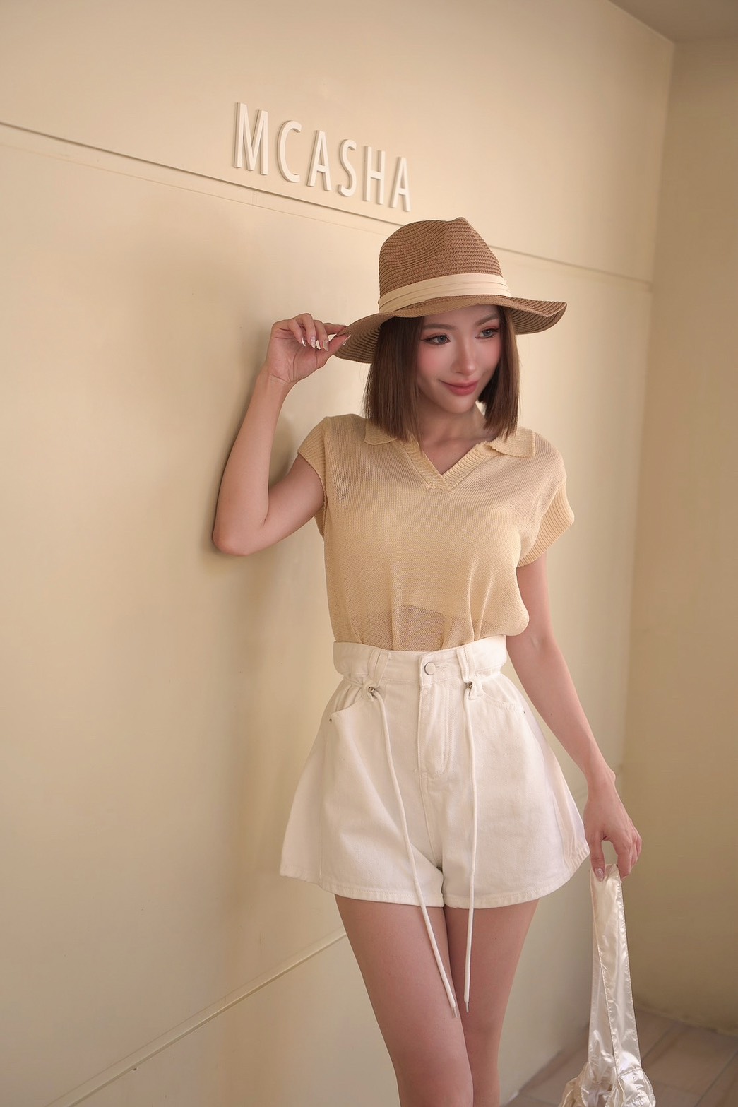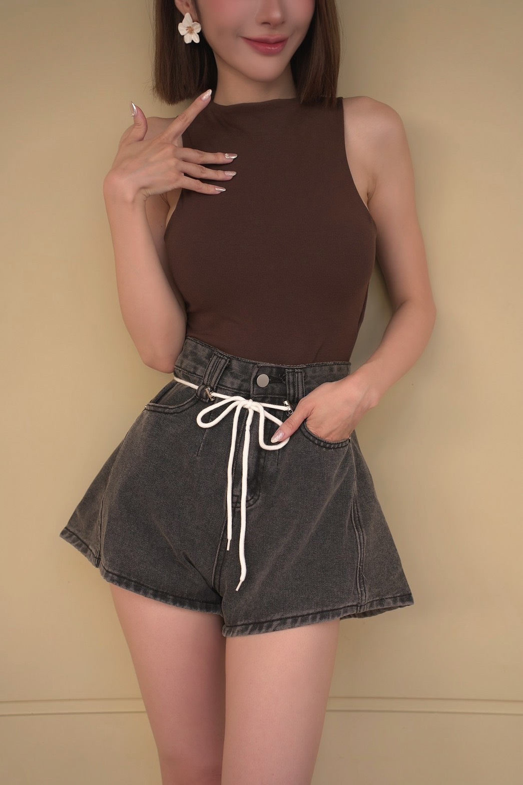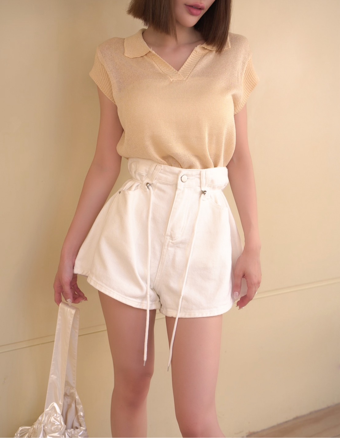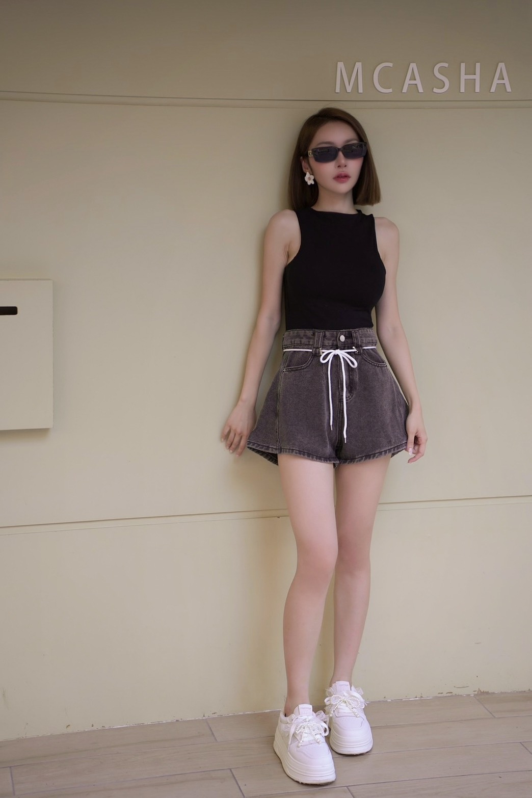 版型描述 | 高腰抽繩及固定按鈕可調整腰圍 | |||