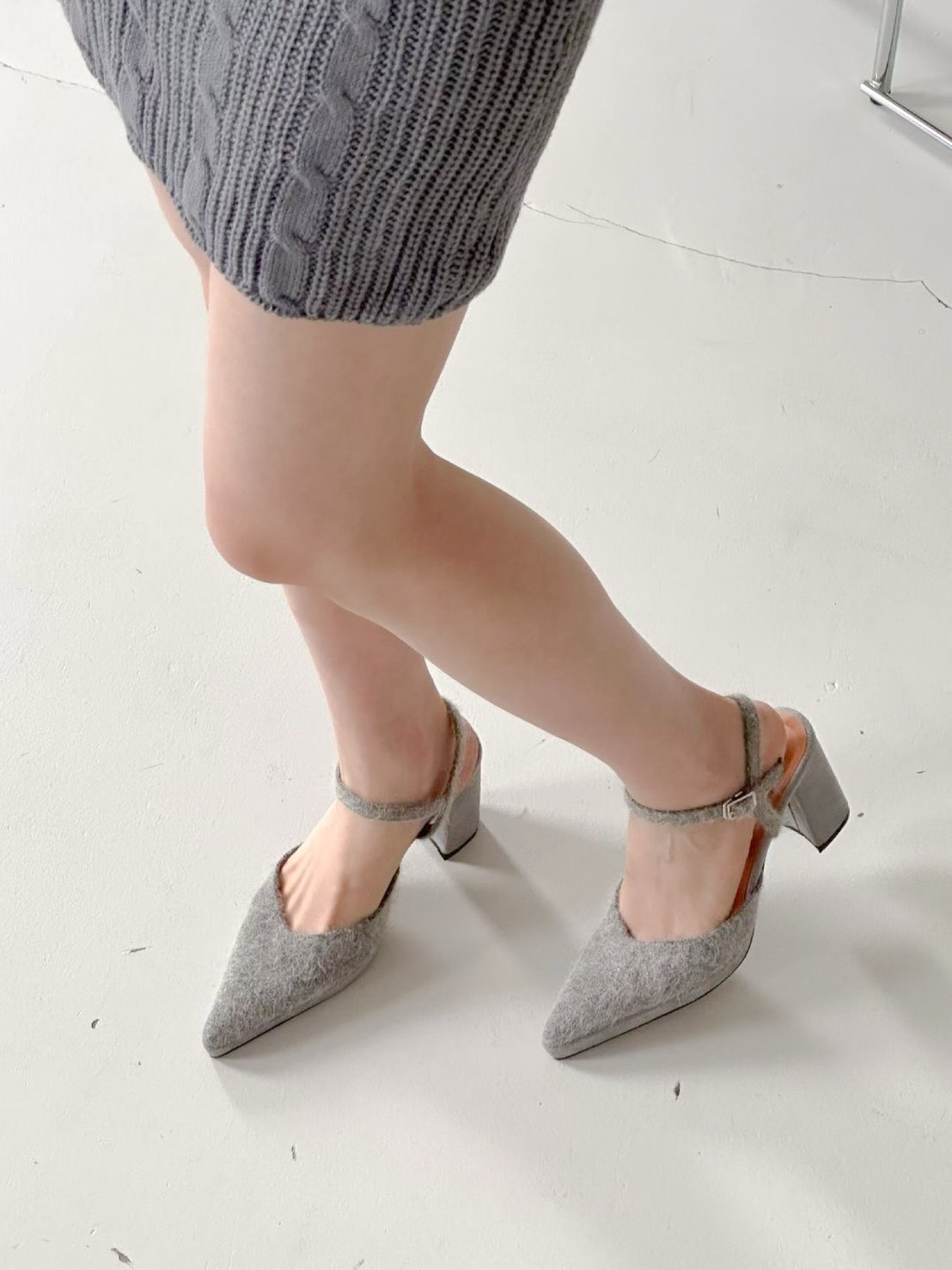 韓國進口毛毛尖頭粗跟鞋 (2色) 36-40