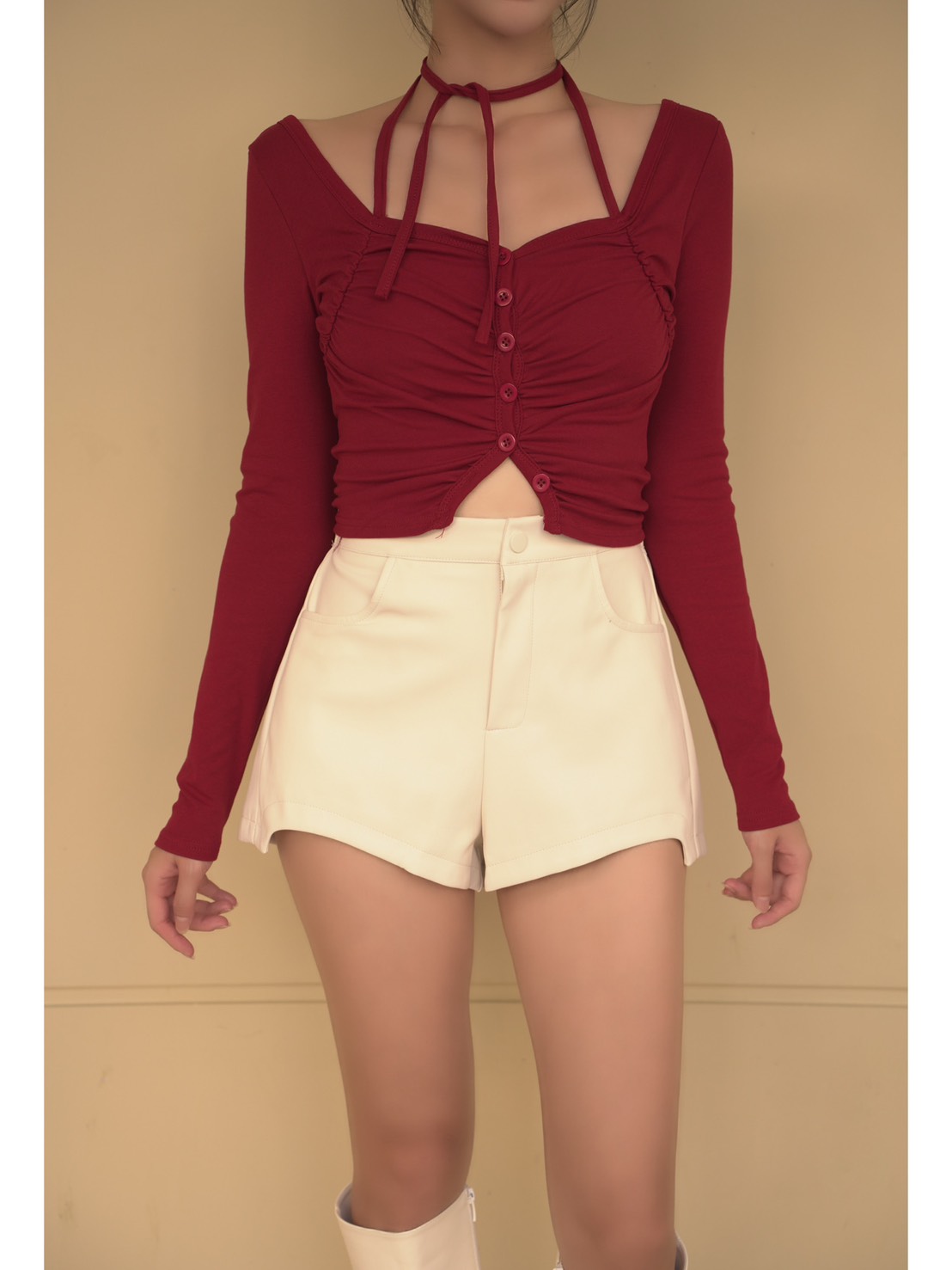 ➤多穿法排釦抓皺長袖上衣 (5色)