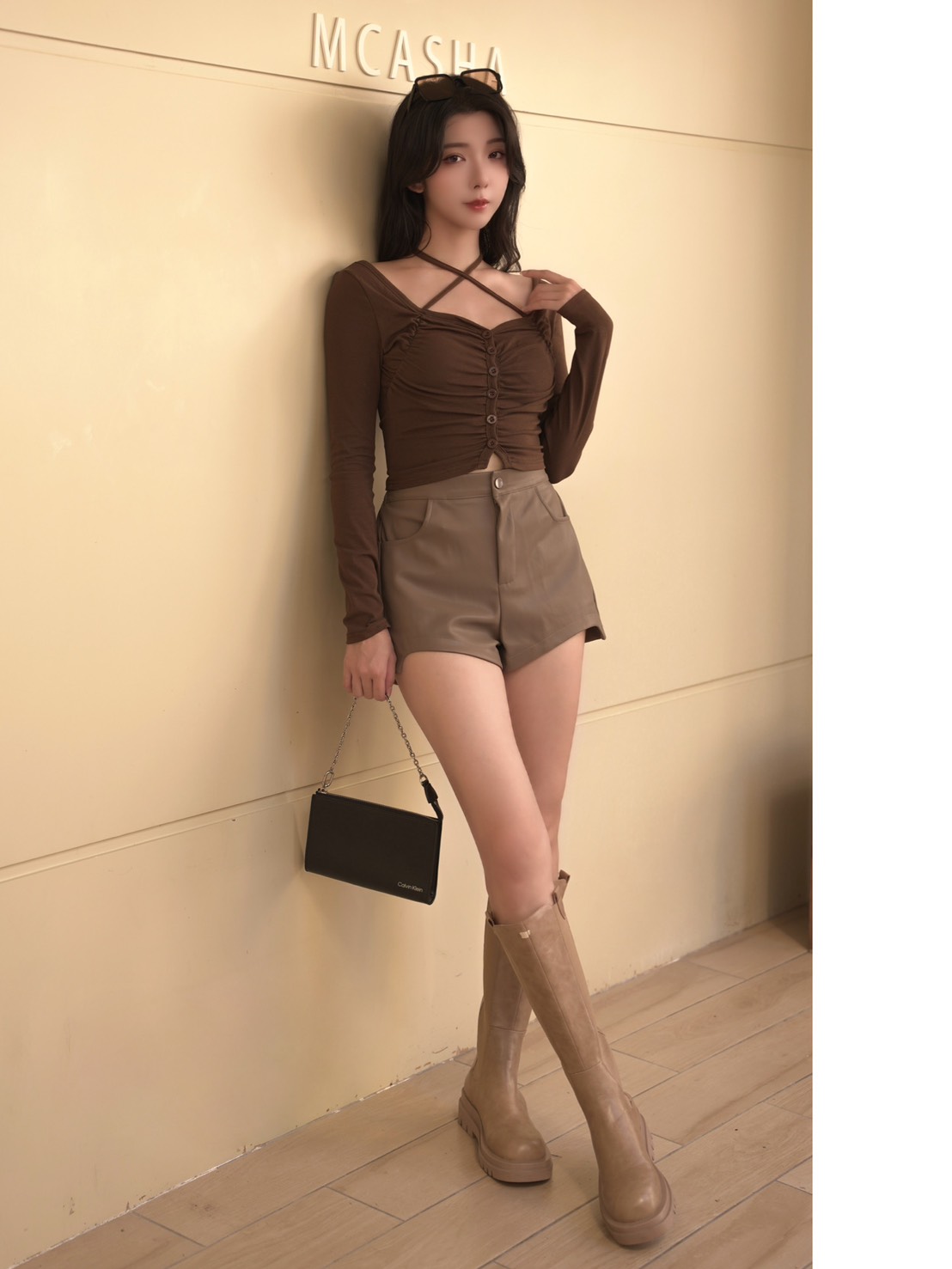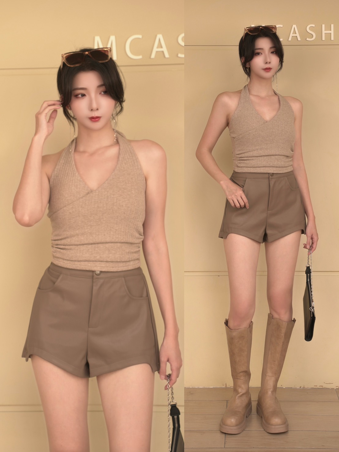 ➤四季百搭磨毛綁脖開V胸墊背心 (5色)