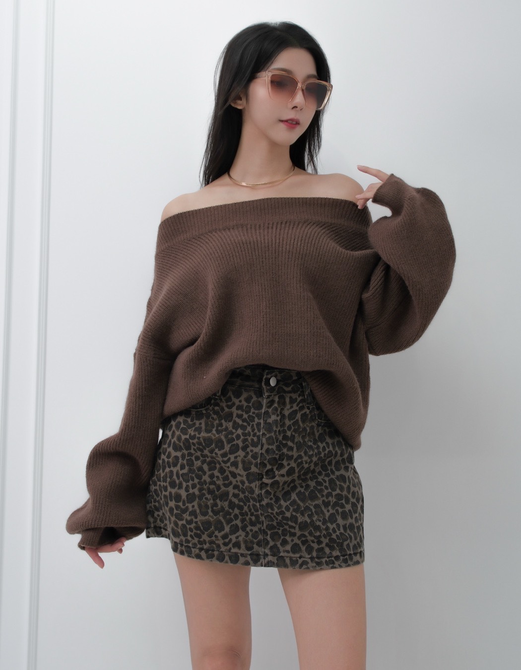 豹紋A字高腰短裙S~XL (2色)