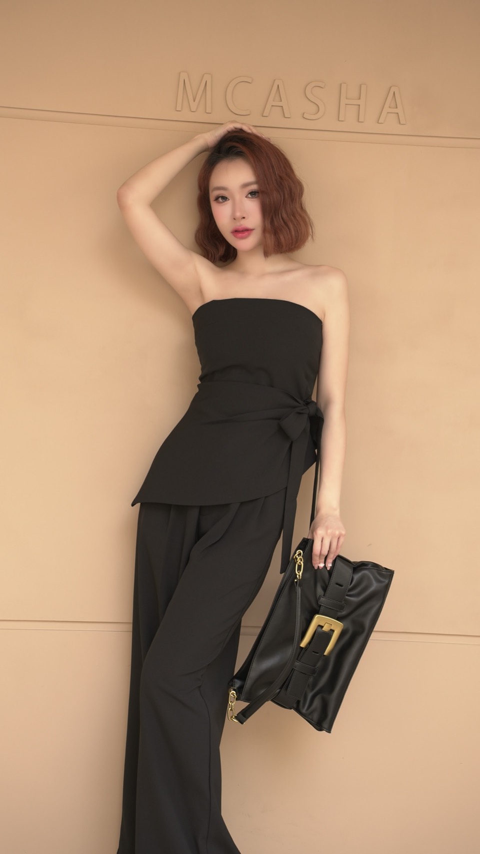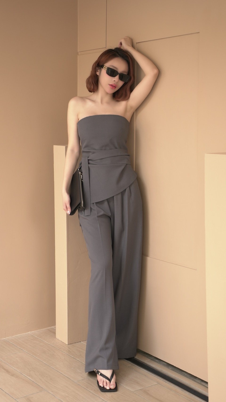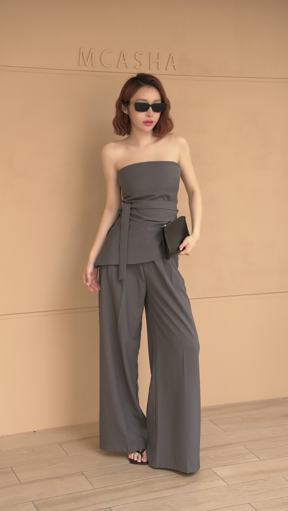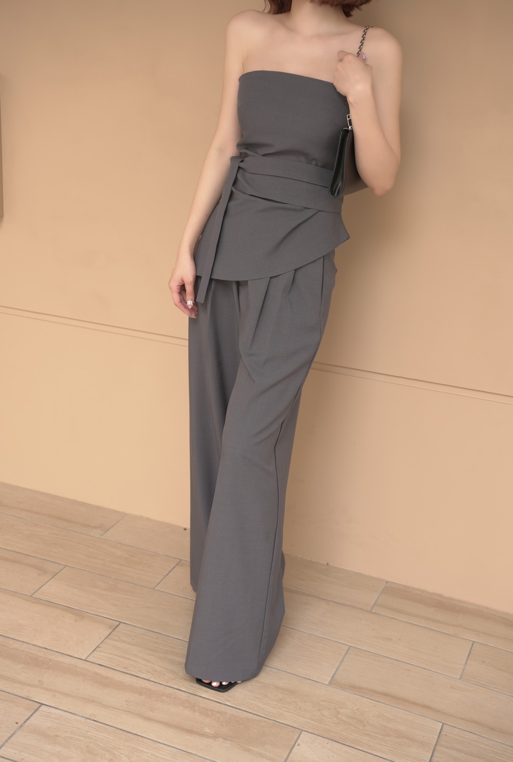西裝綁帶抹胸搭配高腰寬褲S~L (2色)