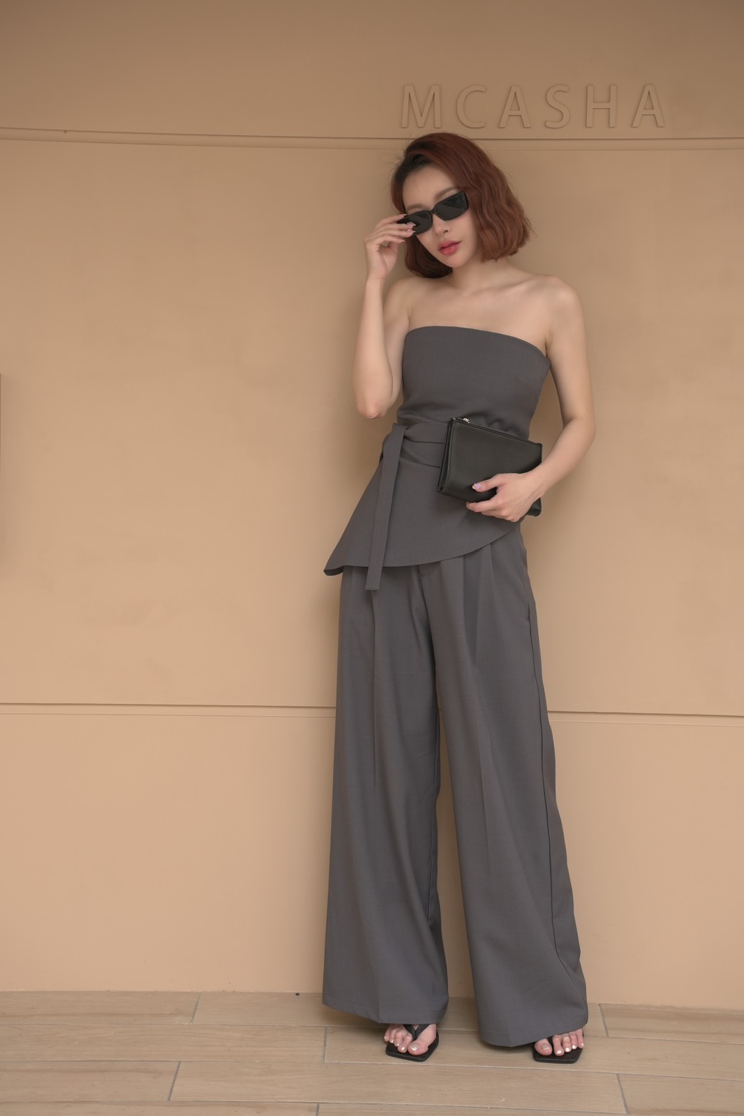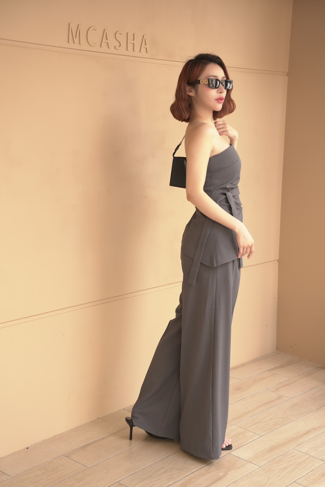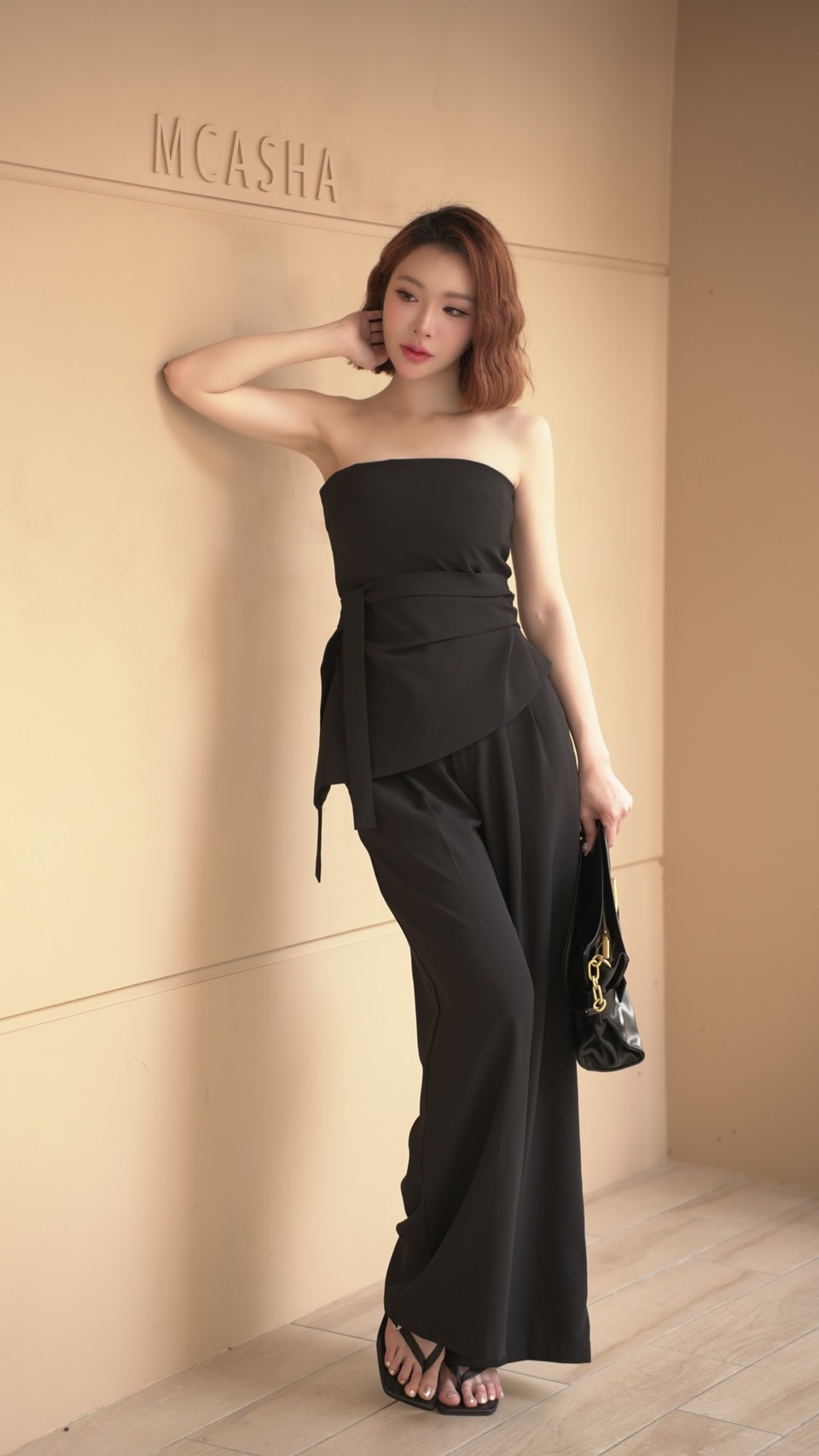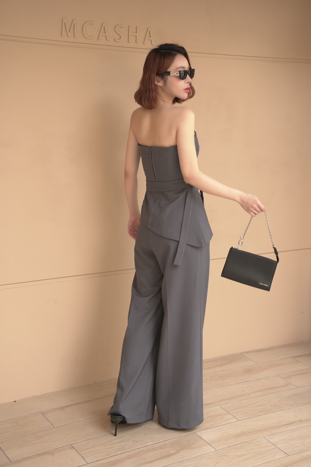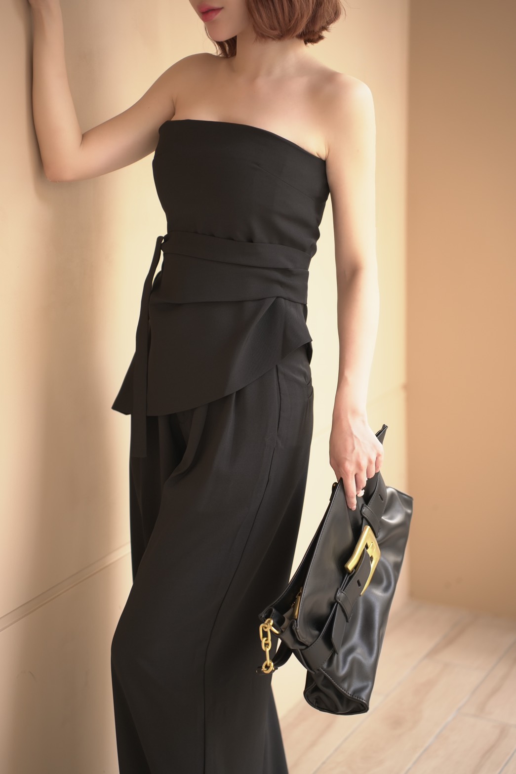 西裝綁帶抹胸搭配高腰寬褲S~L (2色)
