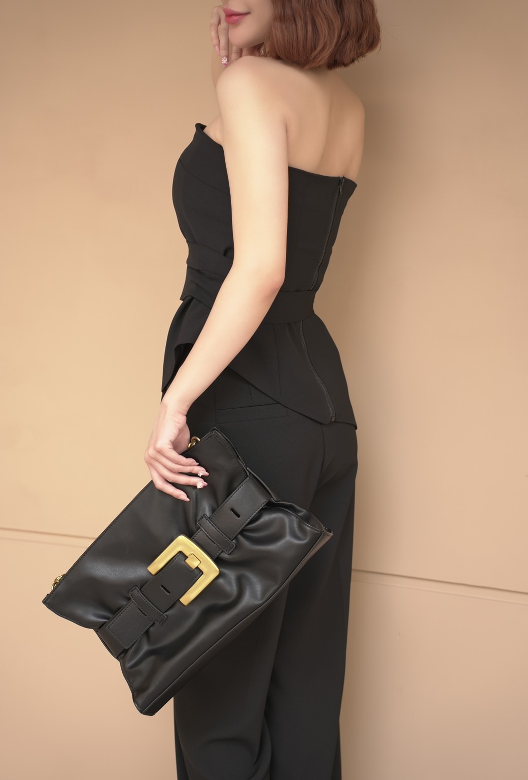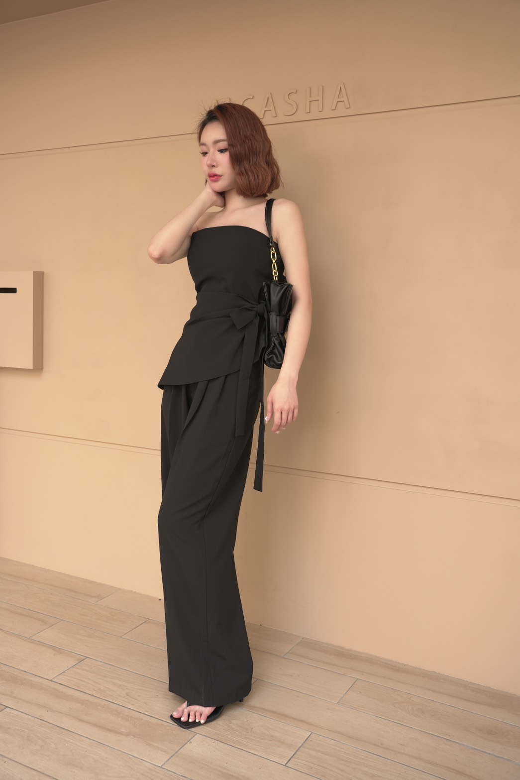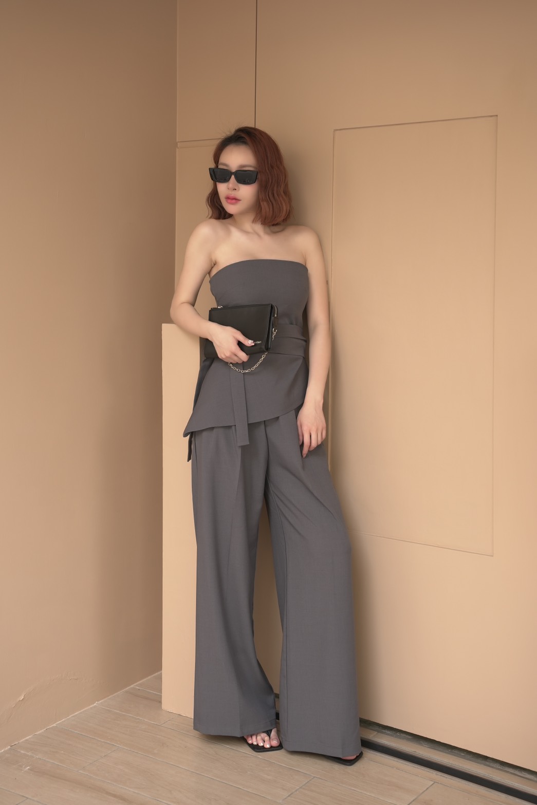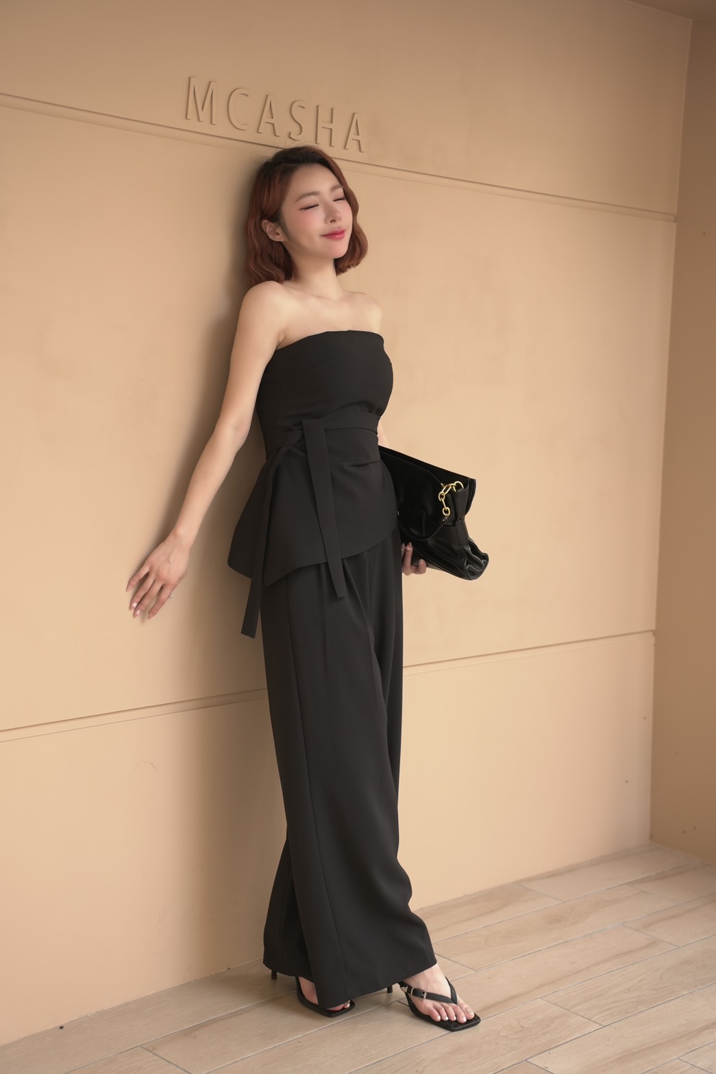 西裝綁帶抹胸搭配高腰寬褲S~L (2色)