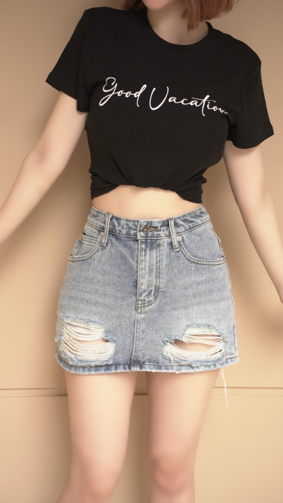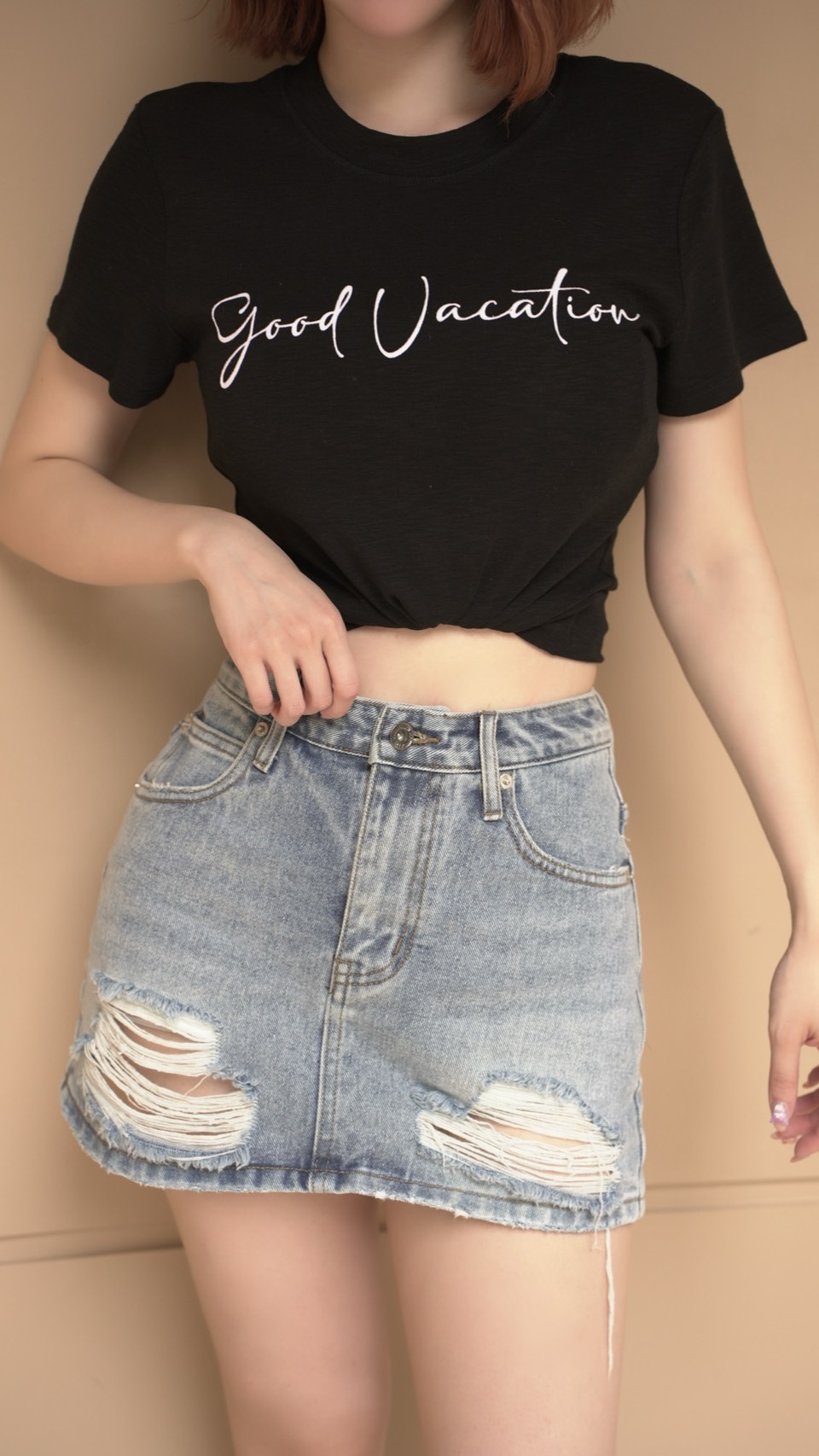 基礎百搭美式刷破短裙S~L