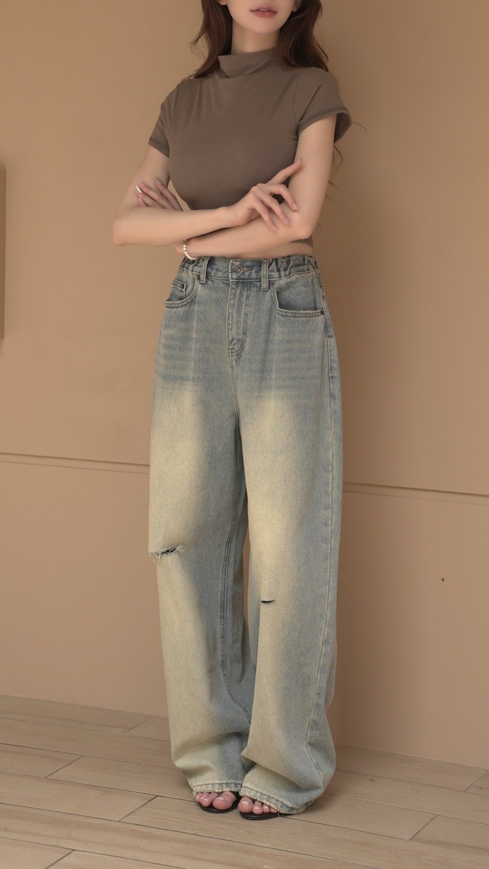修飾圓肩韓系基礎短版上衣♡有副胸墊(4色)