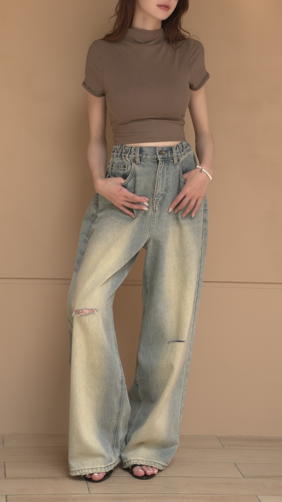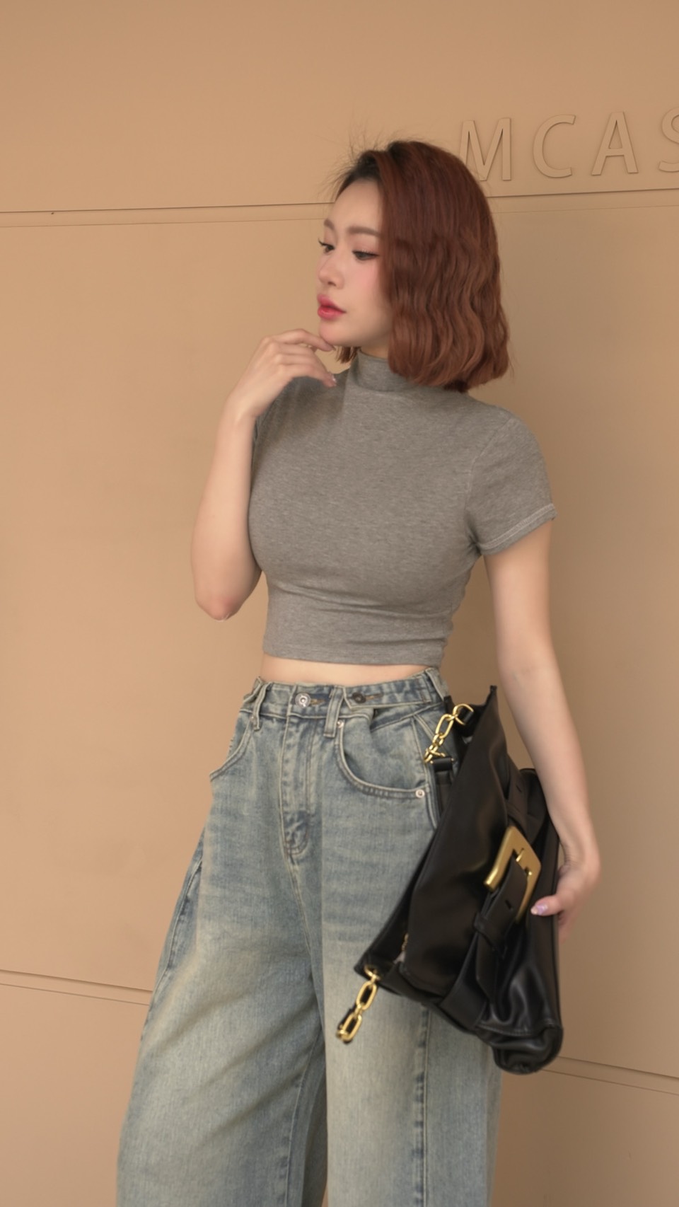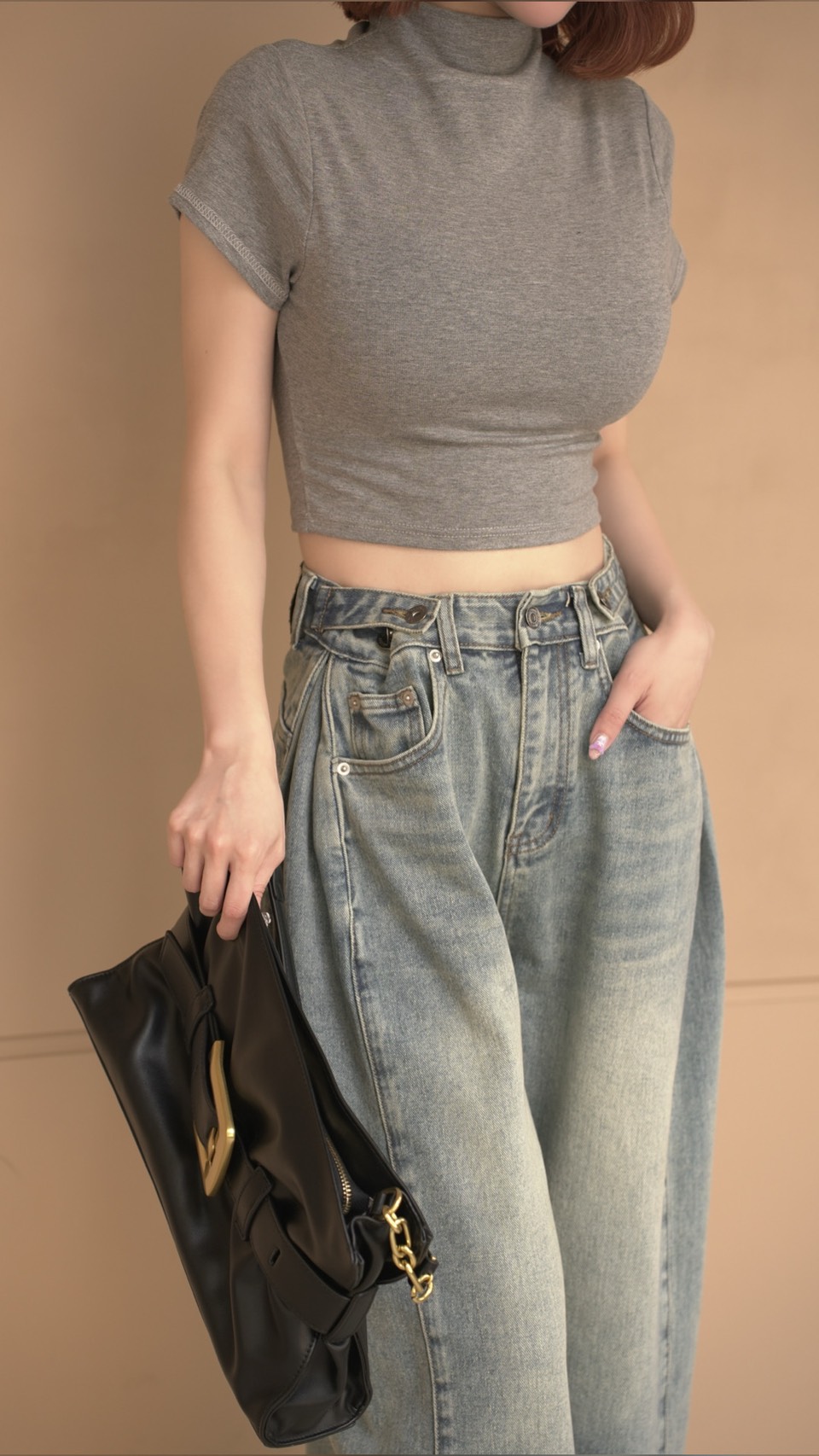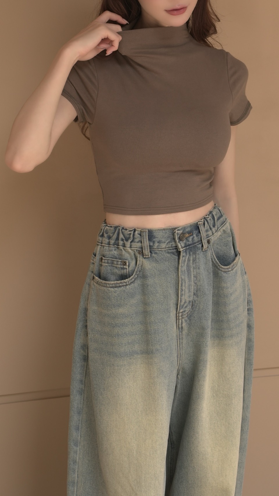 > 修飾圓肩韓系基礎短版上衣♡有副胸墊(4色)